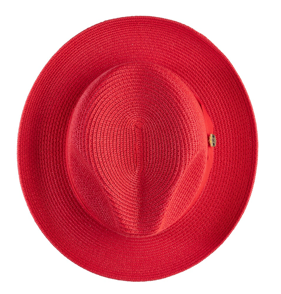 Aurorify Collection: Red Braided Wide Brim Pinch Fedora Matching Grosgrain Ribbon Hat