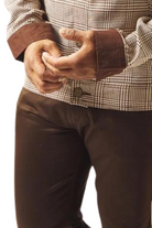 - Classic Glen Plaid Pattern: The brown jacket features a distinguished glen plaid pattern.