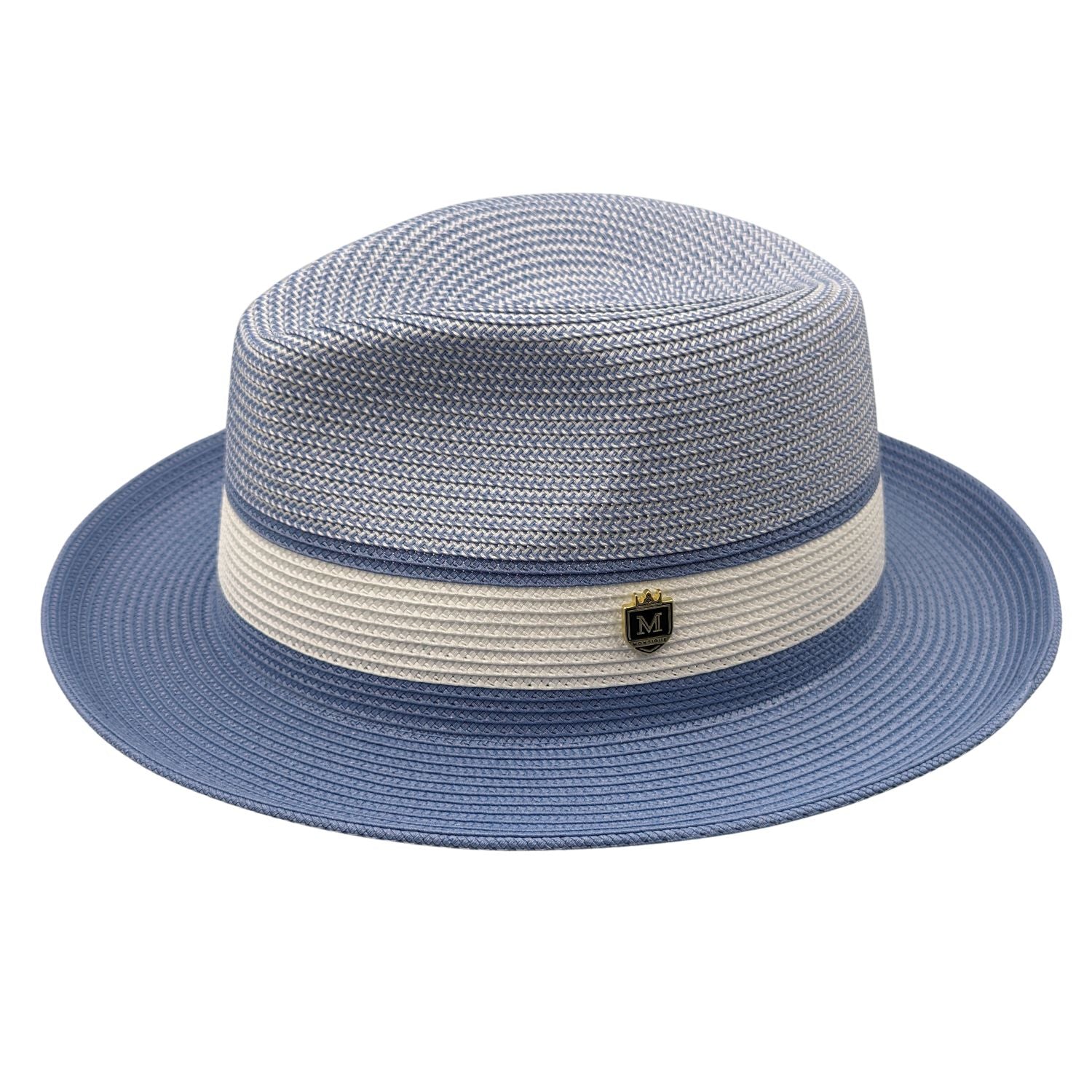 Part of the Lorde Collection, this men's chambray two-tone wide brim straw fedora hat by Montique delivers timeless style with lightweight comfort. Designed with a classic pinch crown and lightweight straw-style construction, this hat provides a polished look while offering added sun protection. The contrasting two tone design and Montique pin detail make it a standout accessory for church outfits, summer events, and dress occasions.