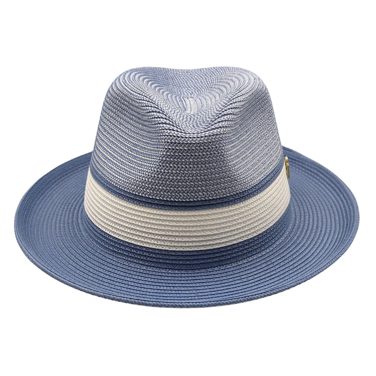 Mens Chambray Two Tone Wide Brim Straw Fedora Hat by Montique