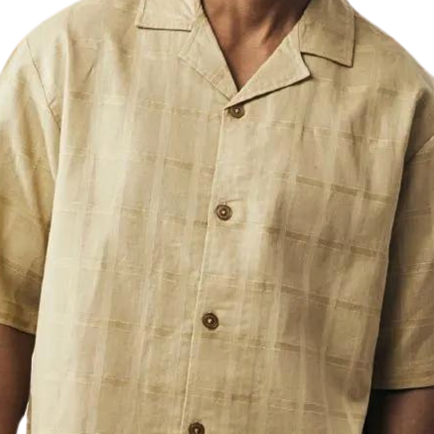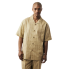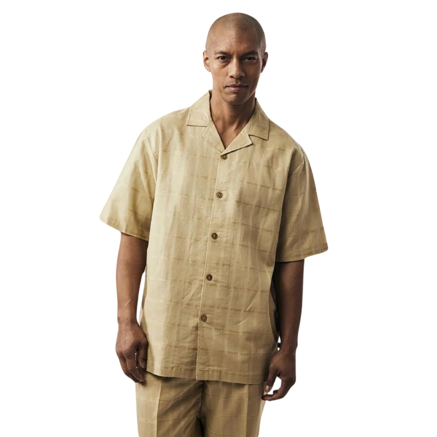 Men's Khaki Linen Jacquard 2-Piece Short Sleeve Set