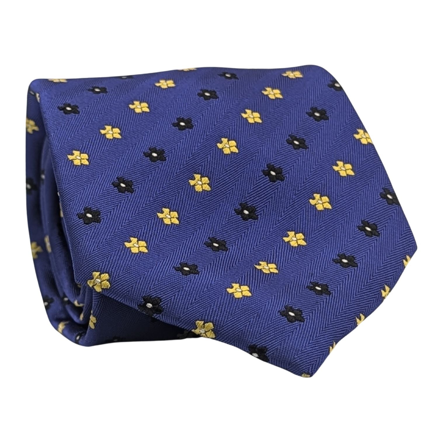 Step up your style game with the Montique Men's Navy Floral Patterned Silk Tie. Featuring a charming floral pattern in vibrant yellow and subtle black accents, this tie adds a dash of sophistication and color to your professional or formal ensemble. Crafted from premium silk, this tie ensures a smooth feel and an exceptional drape that complements any suit.