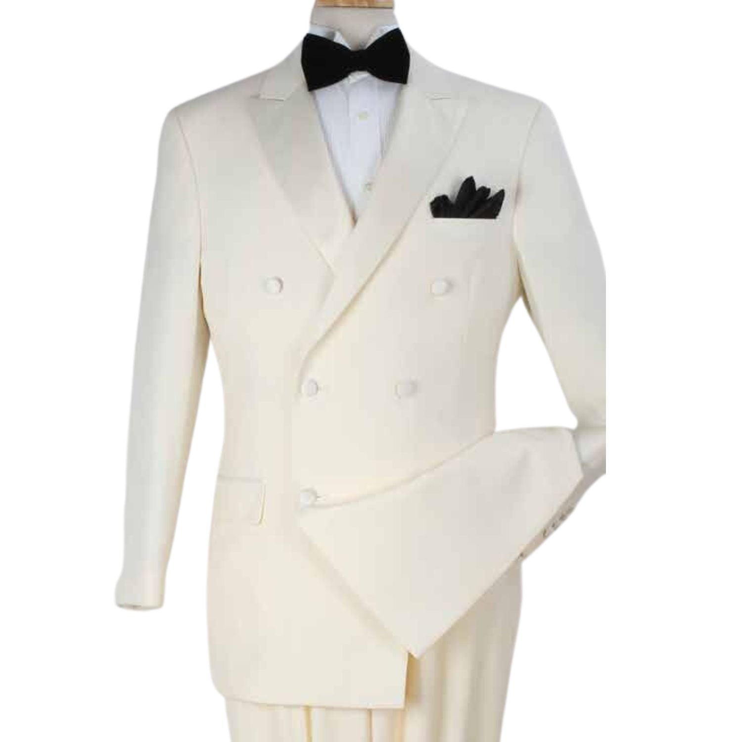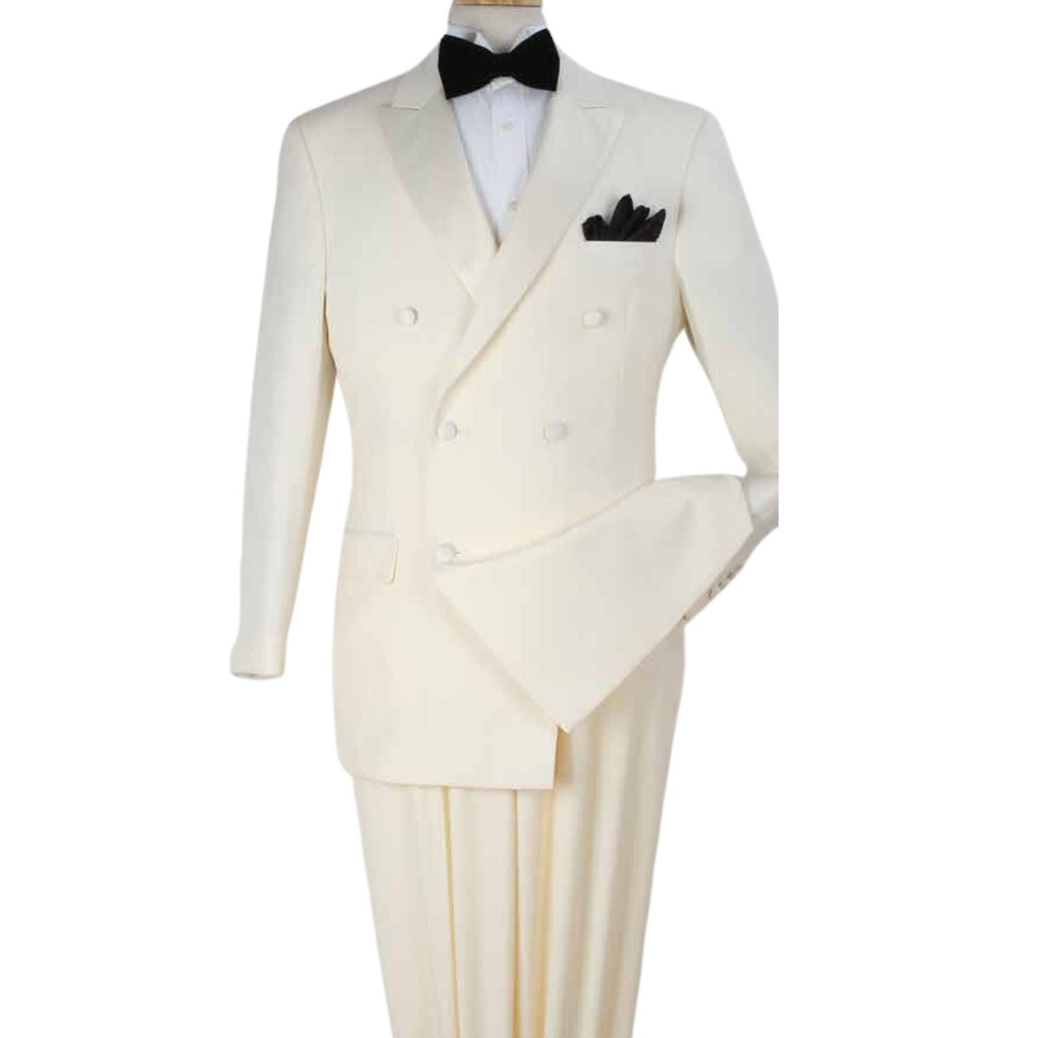 Men's Off White Modern Fit Double-Breasted Luxury Wool-Feel Tuxedo