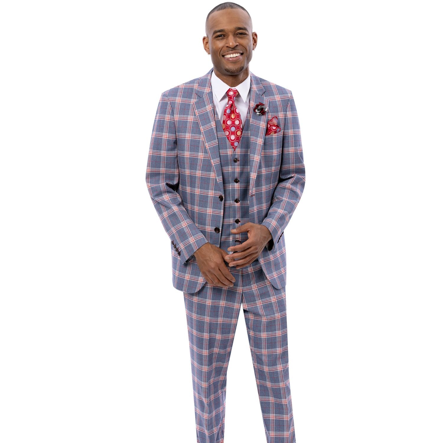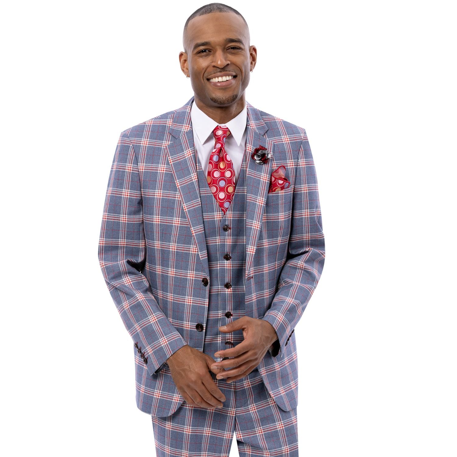 Make a statement at any event with our Men's Plaid Double-Breasted Suit from the Modern Dapper Collection. Crafted with attention to detail, this suit features a vibrant plaid pattern in shades of blue, grey, and red, offering a fresh take on classic tailoring. The perfect blend of traditional style and contemporary fashion, this suit ensures you look your best from office meetings to special occasions.
