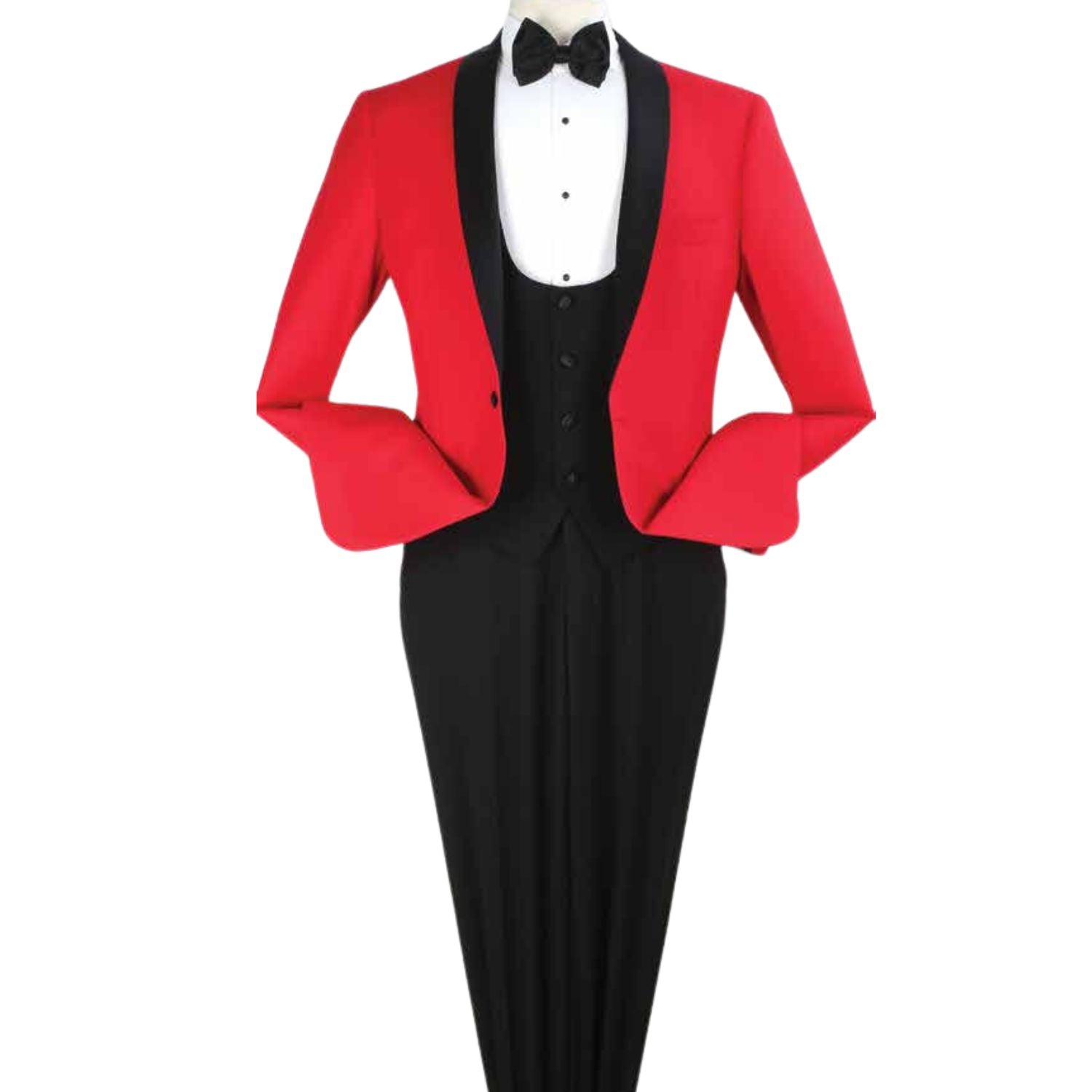 Men's Red Modern Fit 3-Piece Luxury Wool-Feel Suit