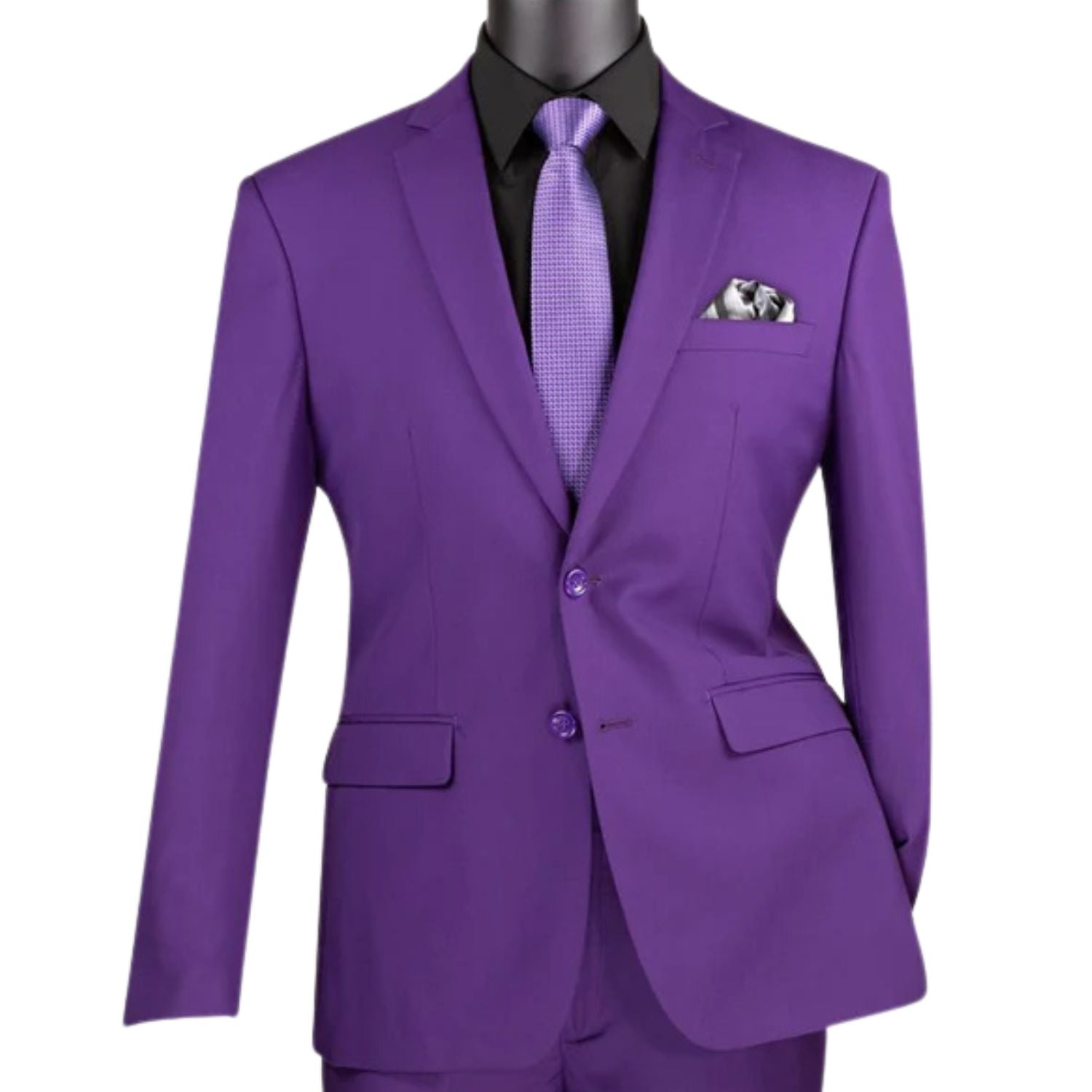 Vintagevo Collection: Purple 2 Piece Solid Color Single Breasted Slim Fit Suit