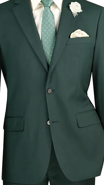 Step into the richness of nature with our Vintagevo Collection Slim Fit Suit in Hunter Green. With a 2-button single-breasted jacket and a notch lapel, this ensemble embodies a classic charm. The flat-front trousers provide a streamlined appearance that complements the jacket, creating a harmonious look.