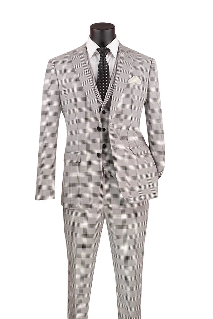 Barnard Collection: Men's Single Breasted Slim Fit Windowpane 3-Piece Suit in Grey