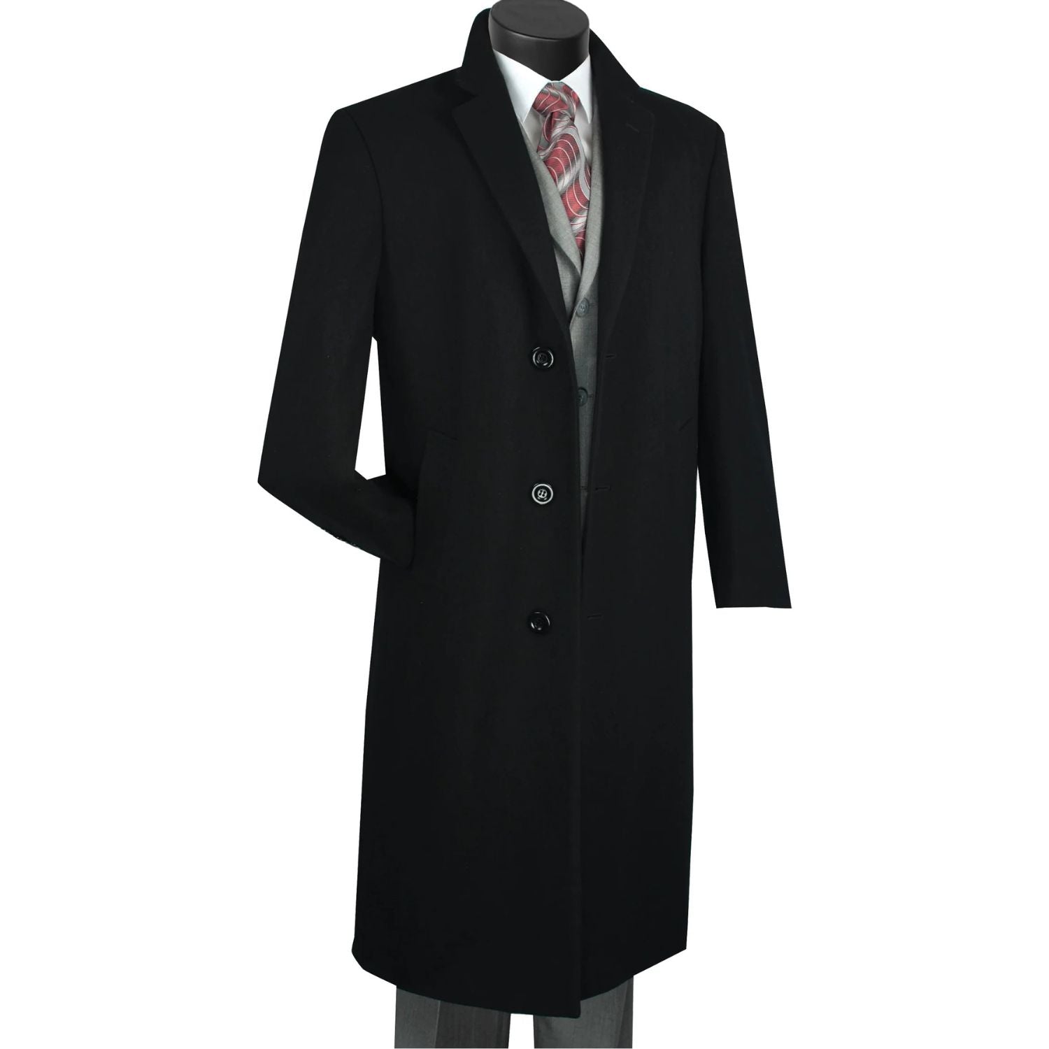 Men's Single-Breasted Wool and Cashmere 3-Button Top Coat - Black