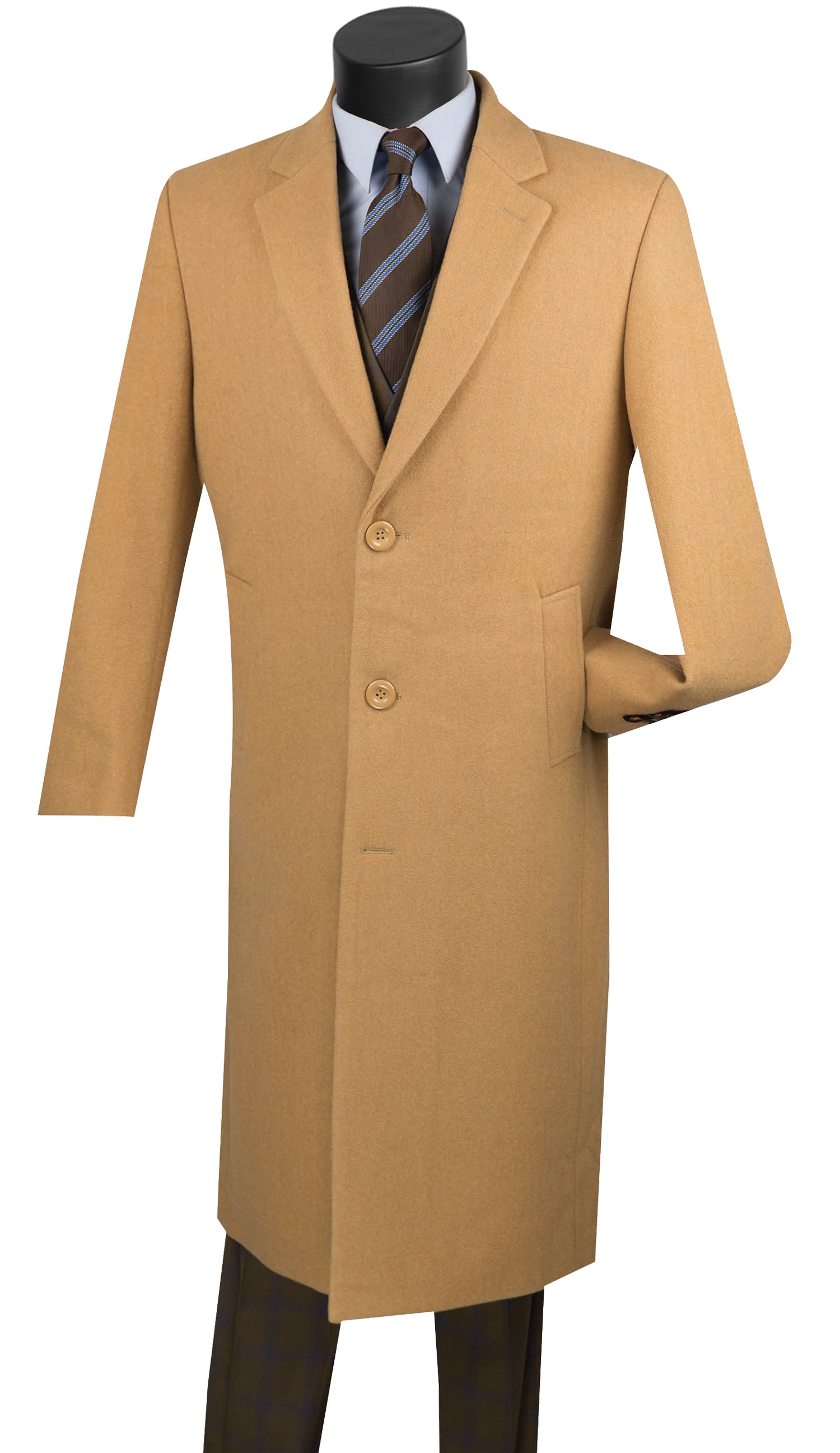 Men's Single-Breasted Wool and Cashmere 3-Button Top Coat- Camel