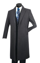 Men's Single-Breasted Wool and Cashmere 3-Button Top Coat- Charcoal