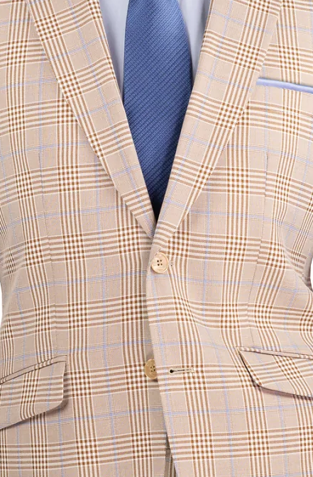 Moderno Collection: Beige 2 Piece Glen Plaid Single Breasted Slim Fit Suit