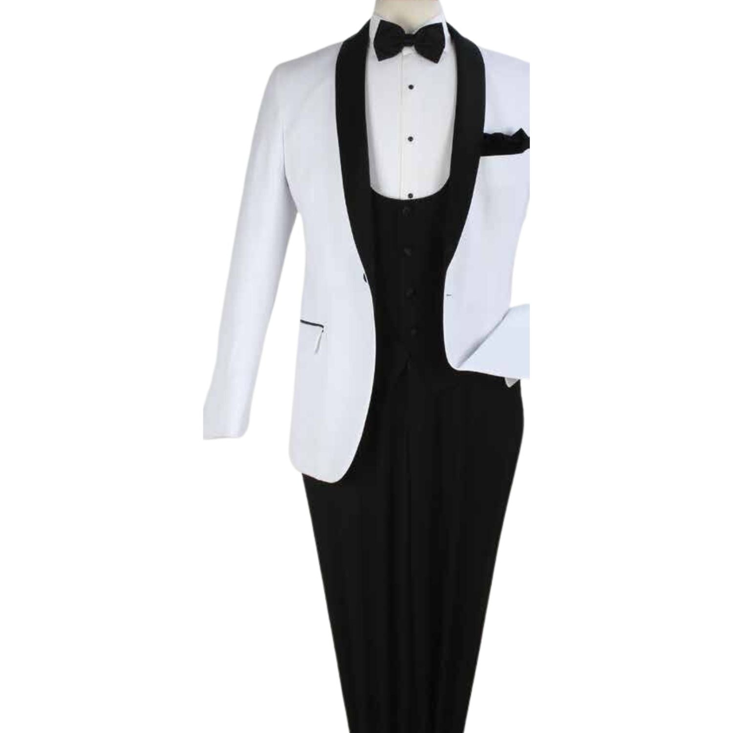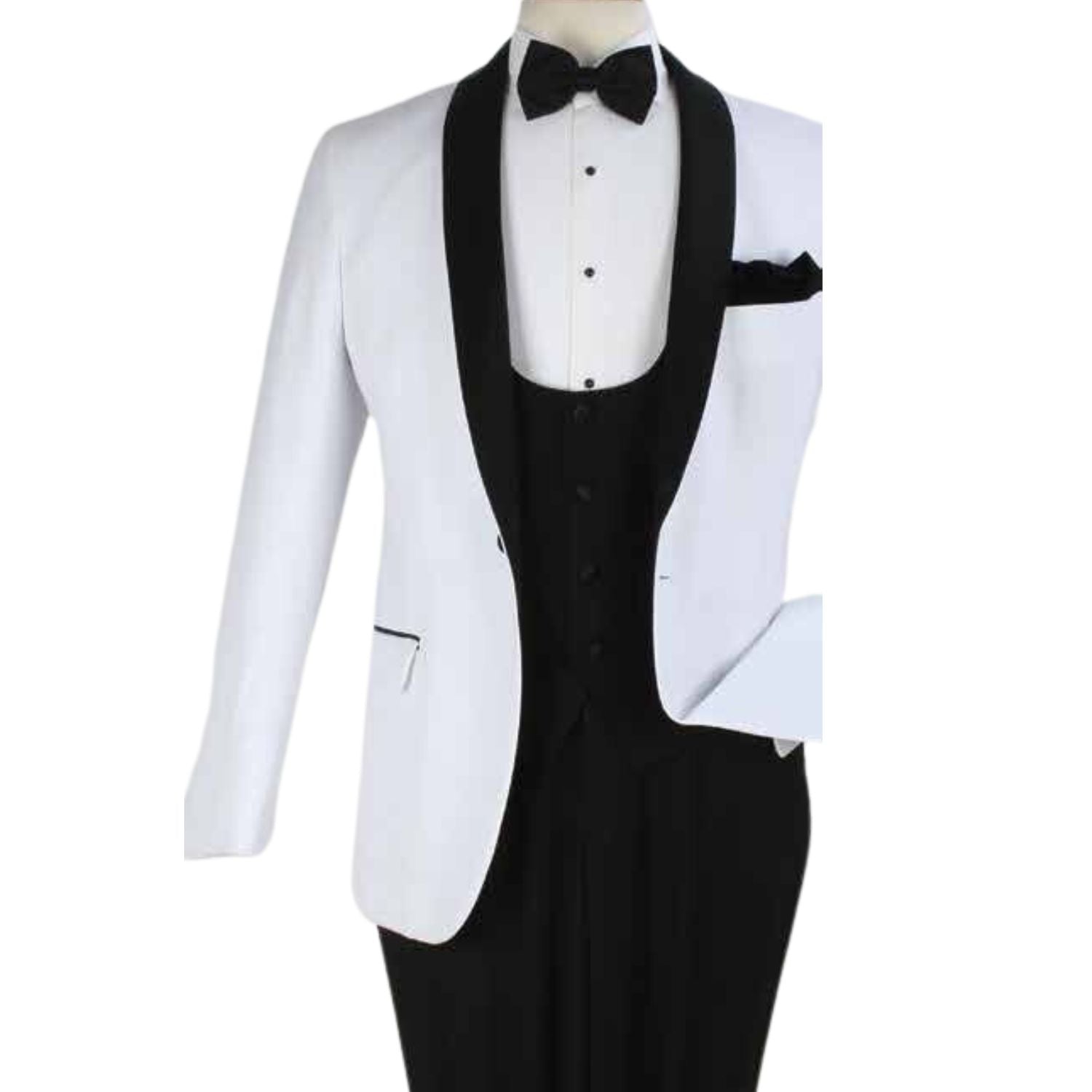 Men's White Modern Fit 3-Piece Luxury Wool-Feel Suit