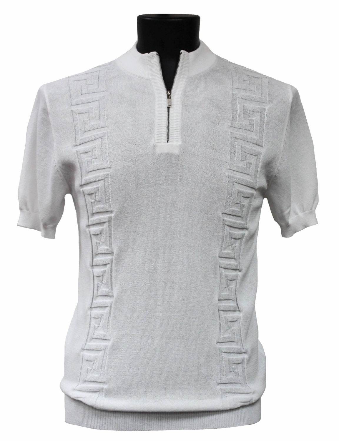 Men's White Short Sleeve Sweater Shirt with Monogram Fabric Design Q126