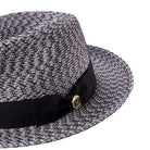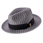 Montique’s Mensa Collection brings a bold twist to classic headwear with this black and white patterned fedora. The woven texture creates a unique visual depth, giving it a modern edge while maintaining timeless sophistication. A sleek black grosgrain ribbon with a signature Montique crest pin adds a refined finish. Whether you’re dressing up for a special occasion or adding character to an everyday outfit, this fedora delivers effortless style with a confident touch.