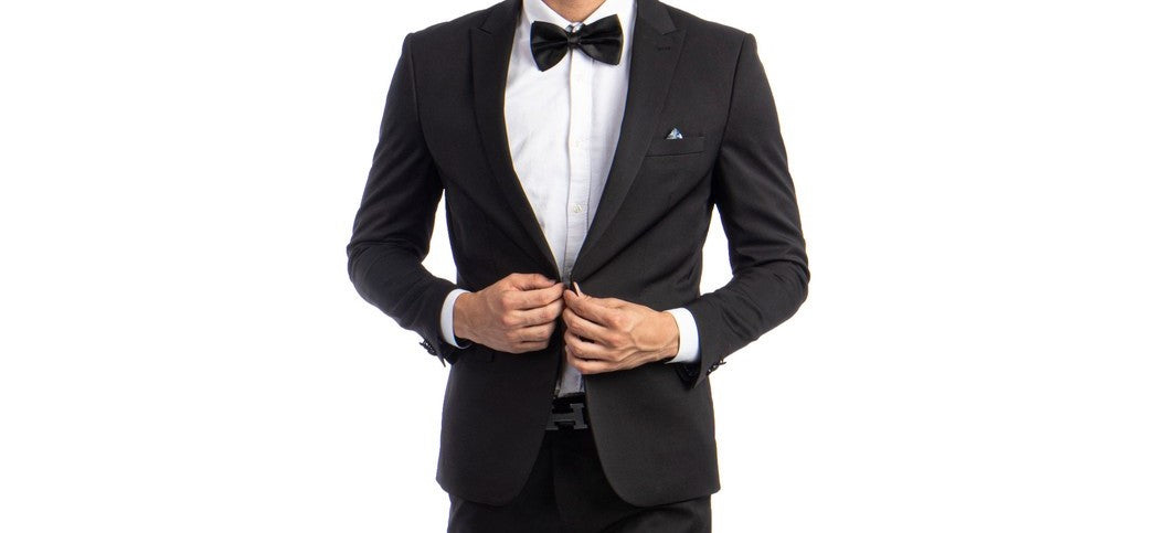 - Suit Type: Two-piece suit comprising a jacket and pants. Bow tie not included.