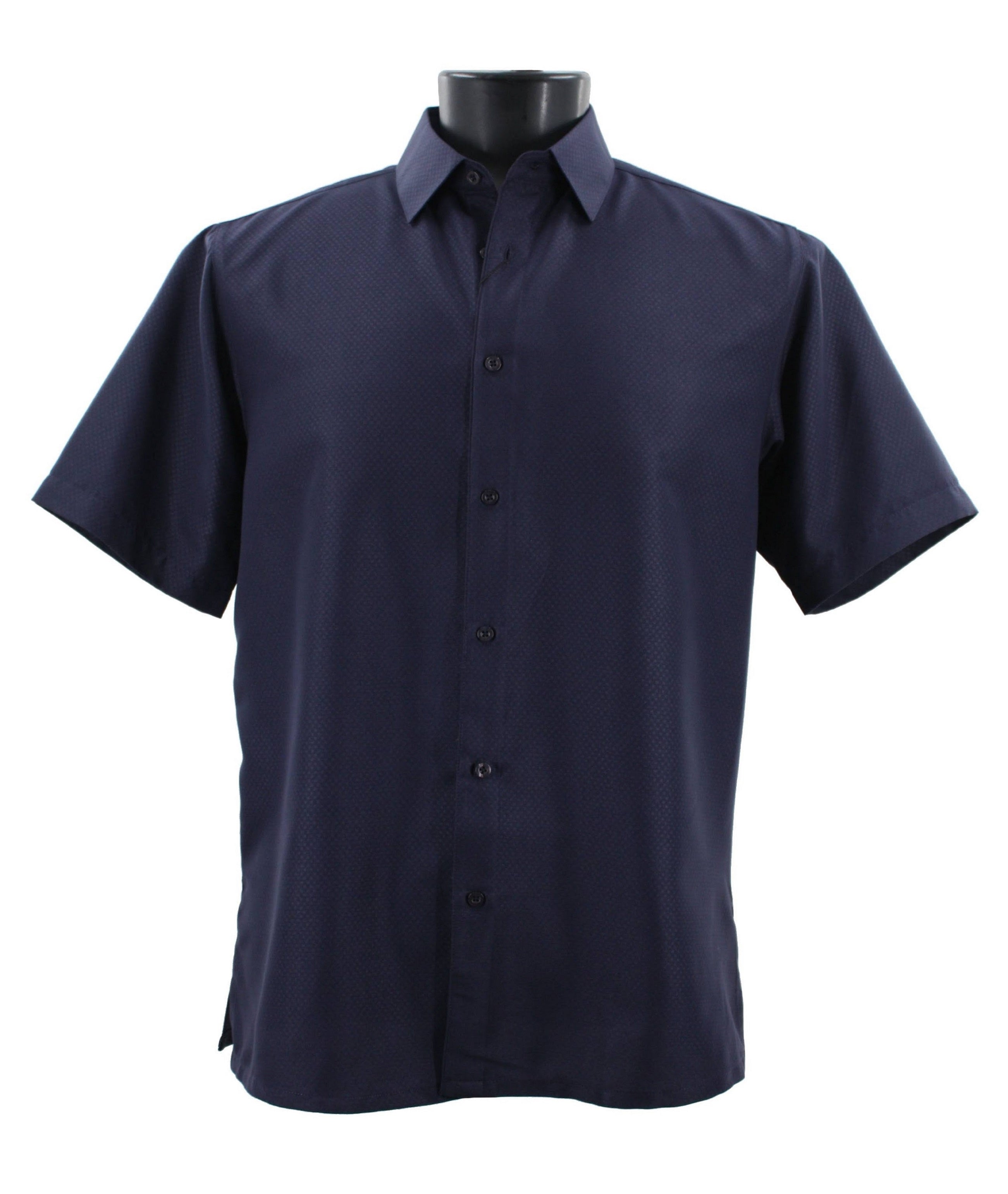 Discover the classic elegance with the MicroDot Collection's Navy Tone-on-Tone Micro-Dot Men's Short Sleeve Shirt. This beautifully crafted shirt features a subtle micro-dot pattern set against a deep navy backdrop, offering a sophisticated yet understated style that complements any gentleman's wardrobe. Made with premium microfiber fabric, this shirt provides a regular fit and a pointed collar, ideal for both formal and casual settings.