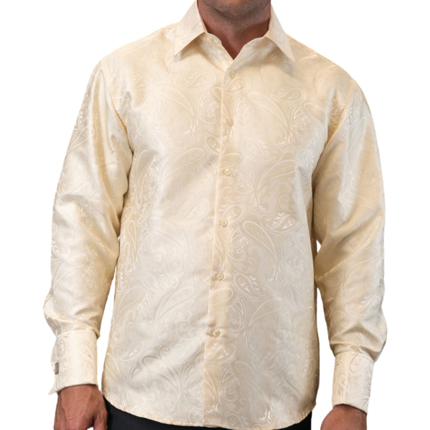 Miranda Collection: High-Quality Ivory Fancy Woven Long Sleeve Shirt