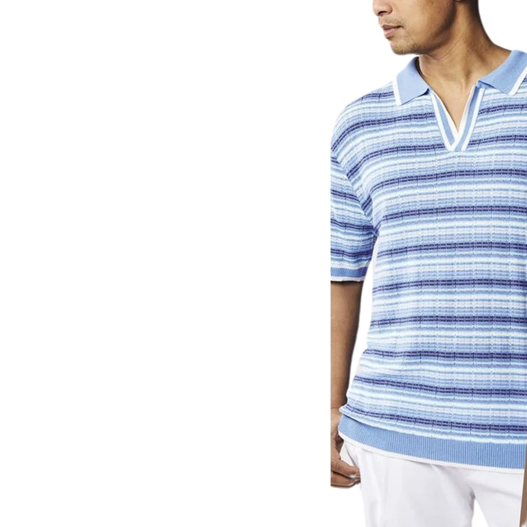 Mirzam Collection: Stacy Adams Striped Dyed Knit Pullover Shirt in Blue