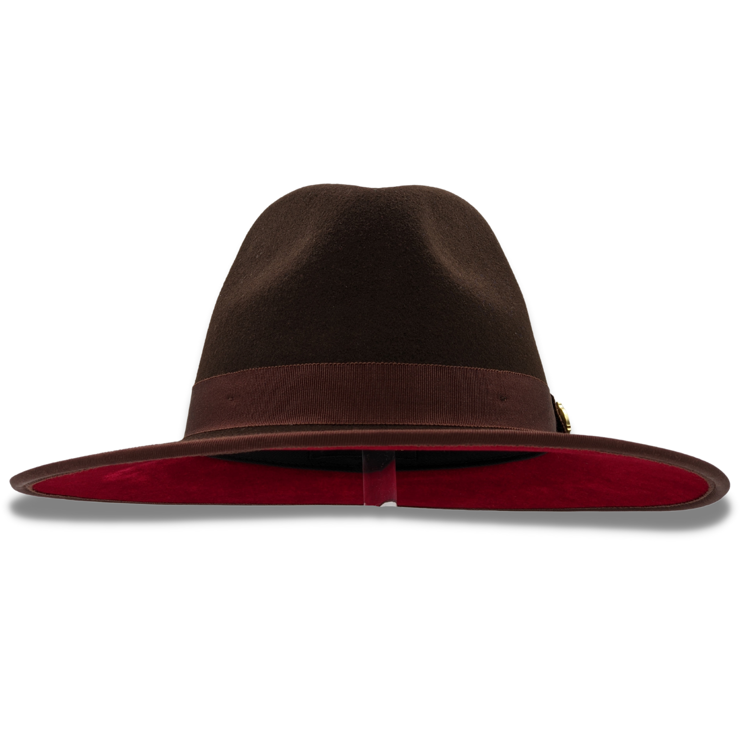 Modernique Collection: Montique Brown 3 1/8" Brim Red Bottom Wool Felt Dress Hat