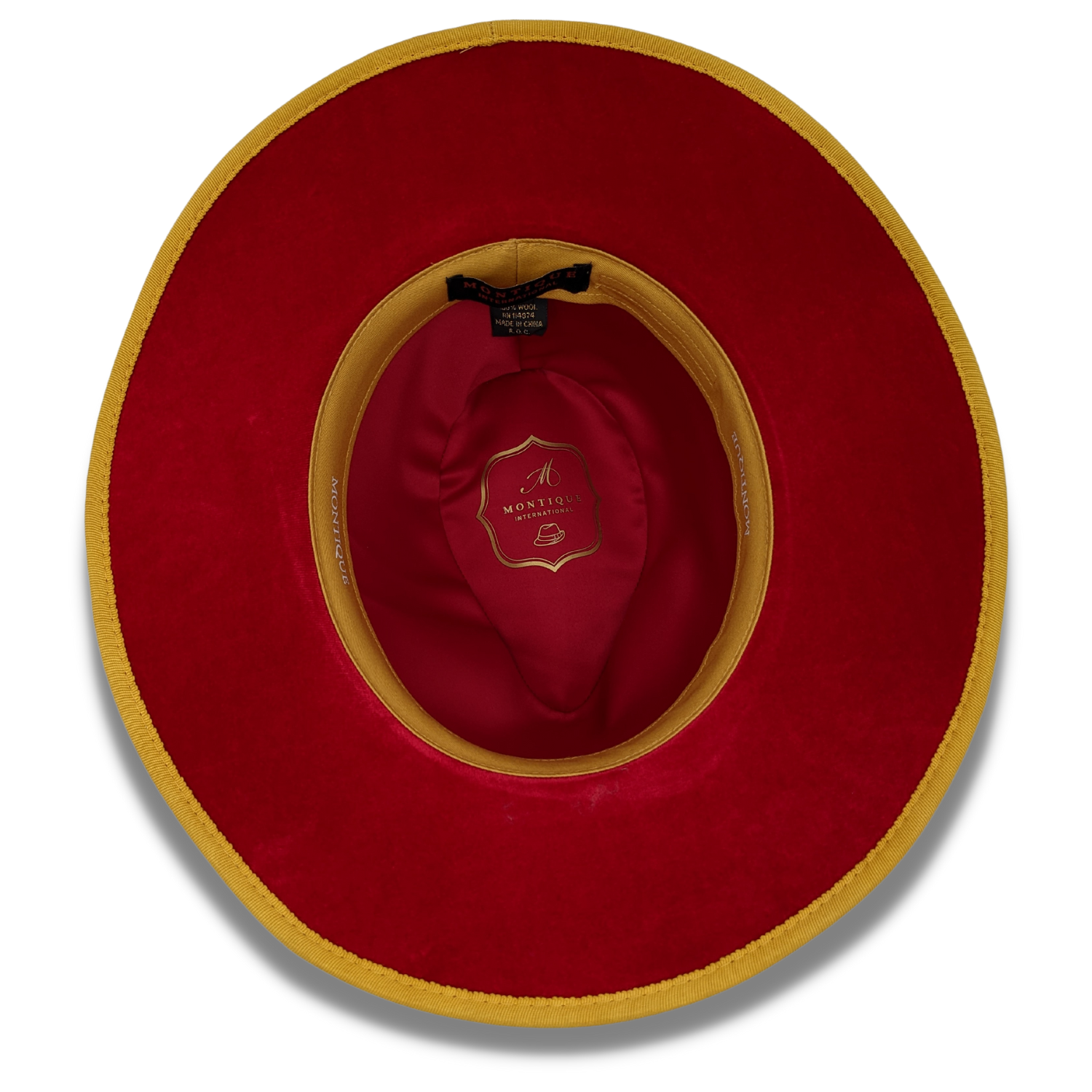 Modernique Collection: Montique Gold 3 1/8" Brim Red Bottom Wool Felt Dress Hat