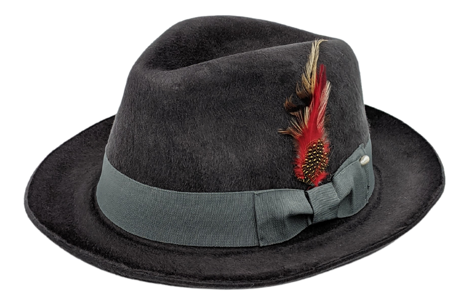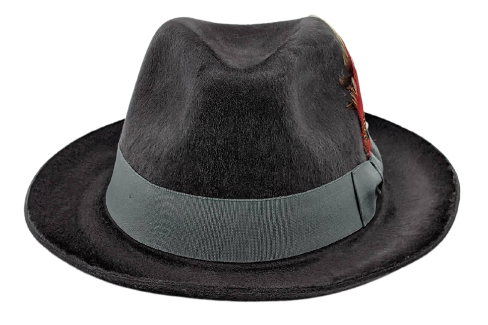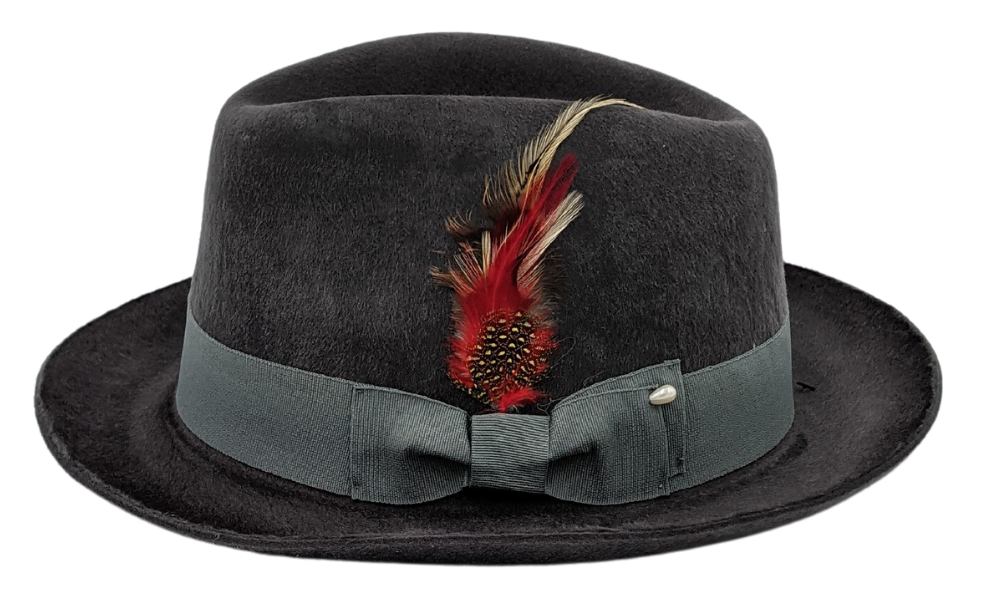 Introducing the Modique Collection, featuring the Montique Silver Fur Felt Pinch Fedora—a bold statement piece for the modern gentleman. Crafted from soft fur felt, this fedora boasts a classic pinch front crown and a matching grosgrain ribbon. The wide brim offers a refined silhouette, while the vibrant feather accent adds a touch of flair, making it perfect for both formal and casual occasions.
