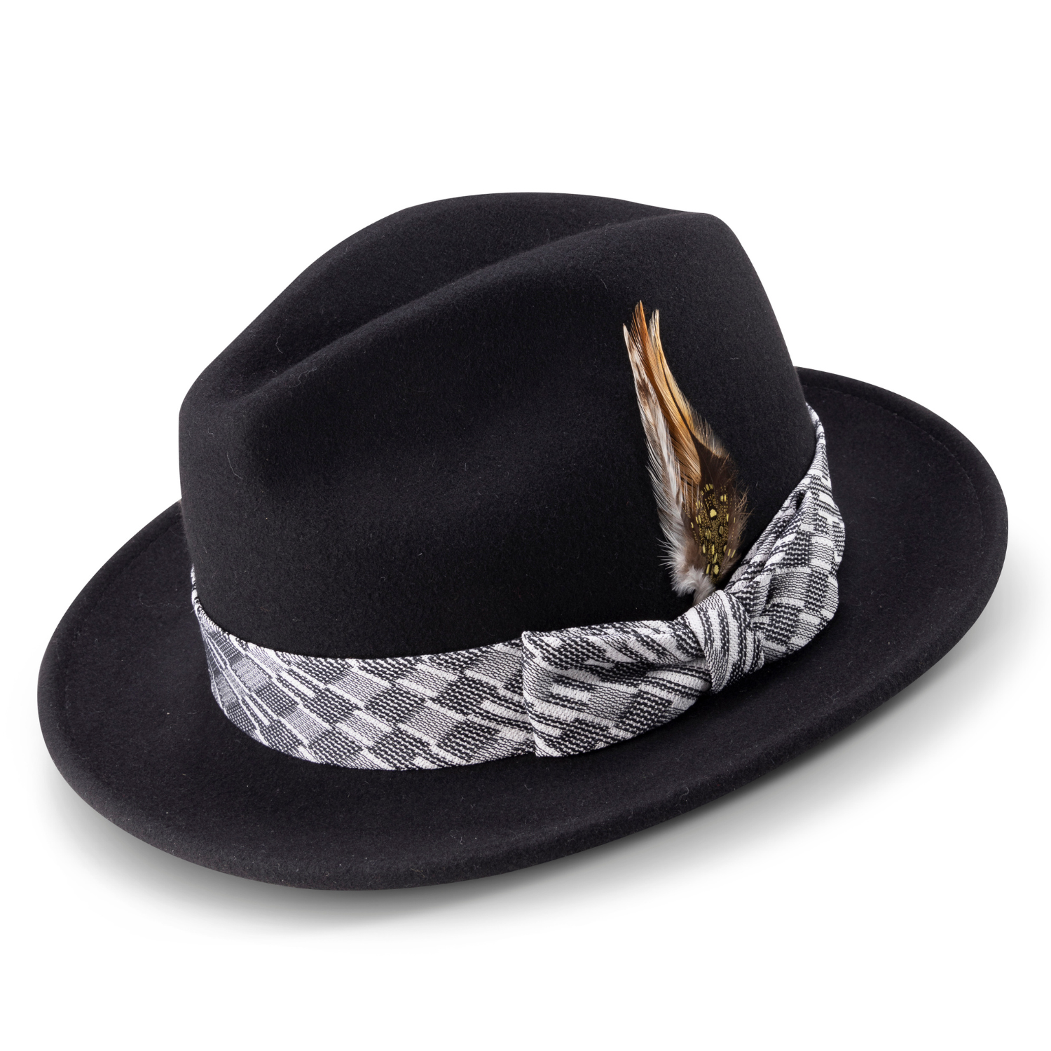 Elevate your style with the Montique Black Wool Felt Hat, featuring a distinguished 2 ½" wide brim. This elegant accessory is designed with meticulous attention to detail, including a matching grosgrain ribbon. Pair it effortlessly with the matching suit and shoes, all available separately.
