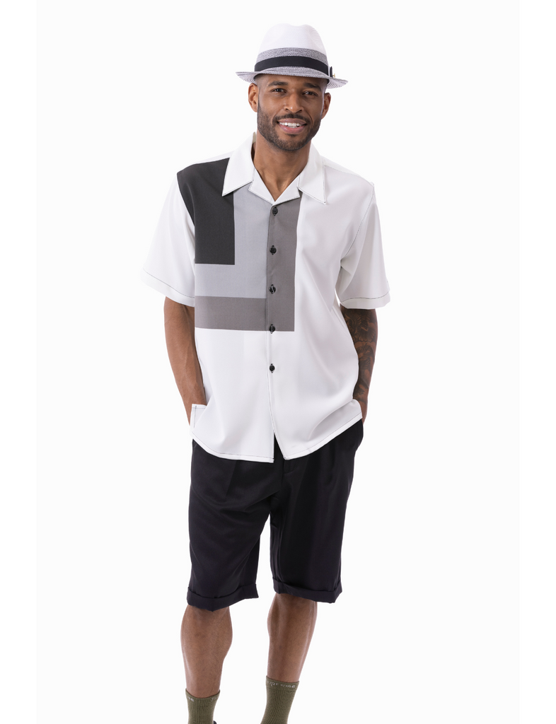 Montique Black Square Pattern Walking Suit 2 Piece SHORT PANTS Set 72309