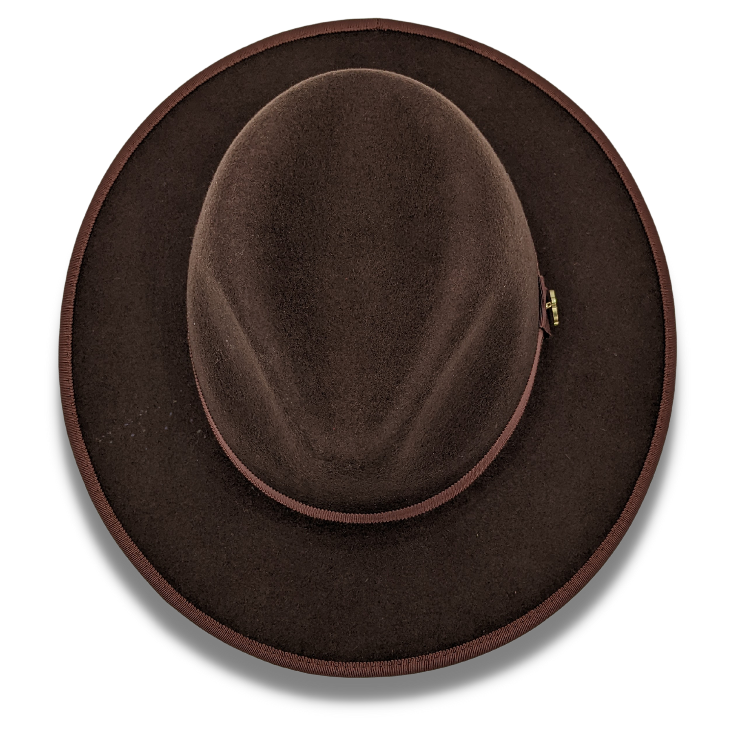 Modernique Collection: Montique Brown 3 1/8" Brim Red Bottom Wool Felt Dress Hat