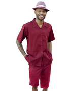 Montique Burgundy Tone on Tone Walking Suit 2 Piece SHORTS SET 72321
