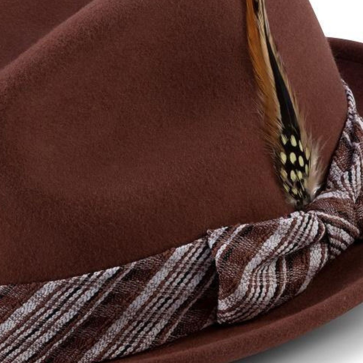 Wool Felt Fedora, 2" Brim, Matching Ribbon, Feather Accent, Montique
