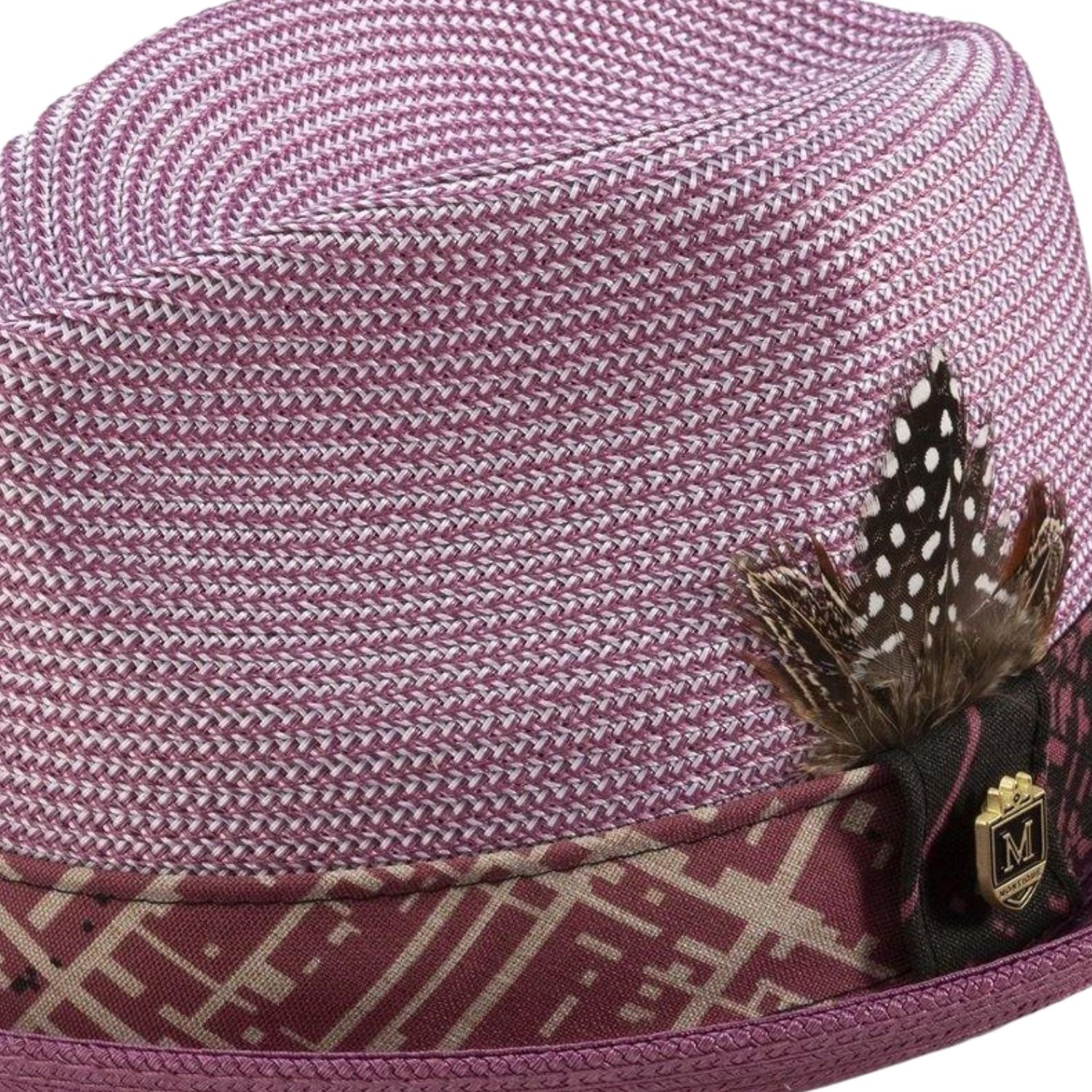 Montique Dusty-Rose Braided Stingy Brim Pinch Fedora Hat H-1904