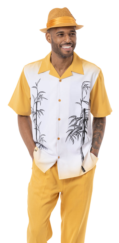Montique Gold Tropical Print Walking Suit 2 Piece Short Sleeve Set 2207