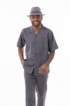 Montique Grey Tone-on-Tone Walking Suit 2 Piece Short Sleeve Set 2321