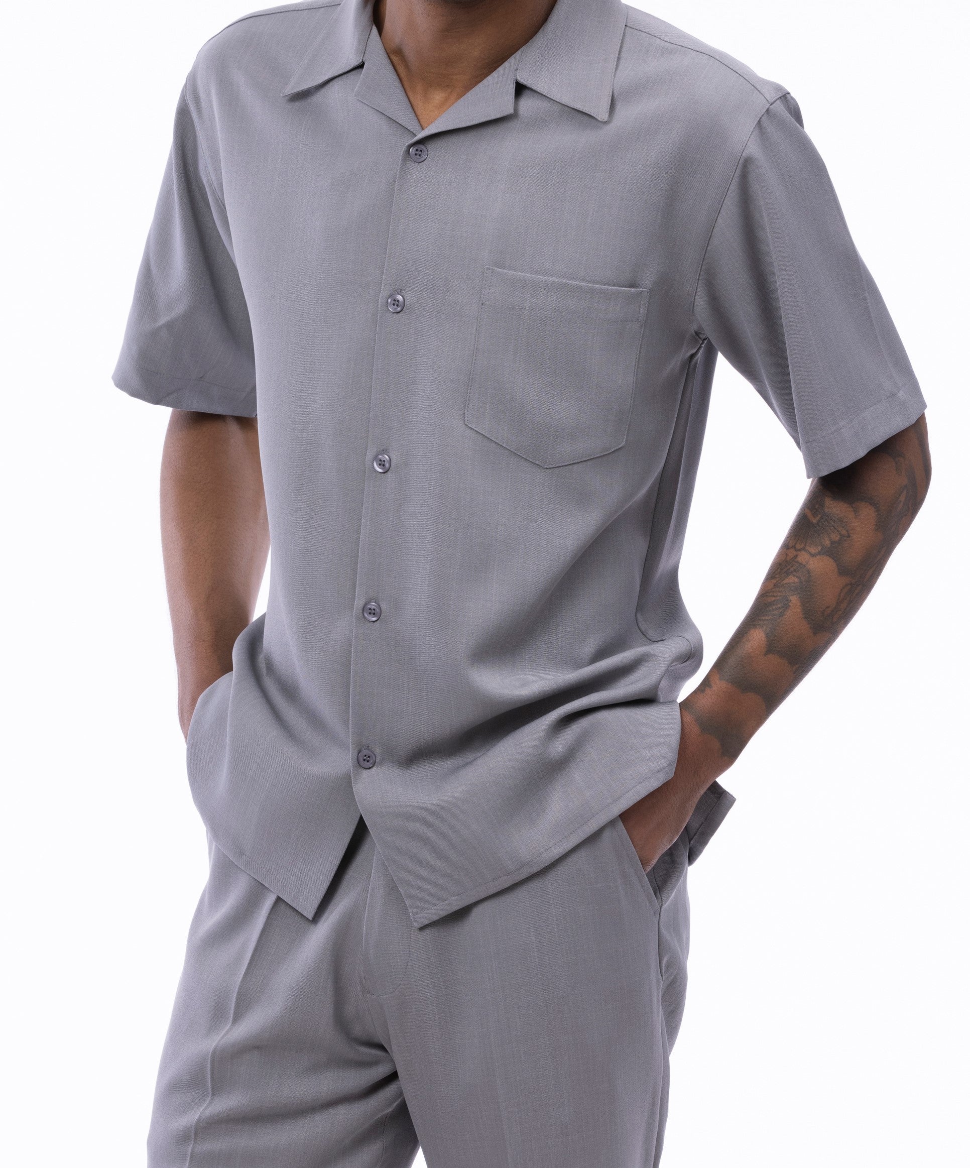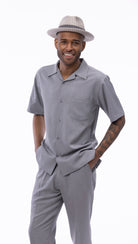 Classic Collection: Grey Walking Suit 2 Piece Solid Color Short Sleeve Set 696