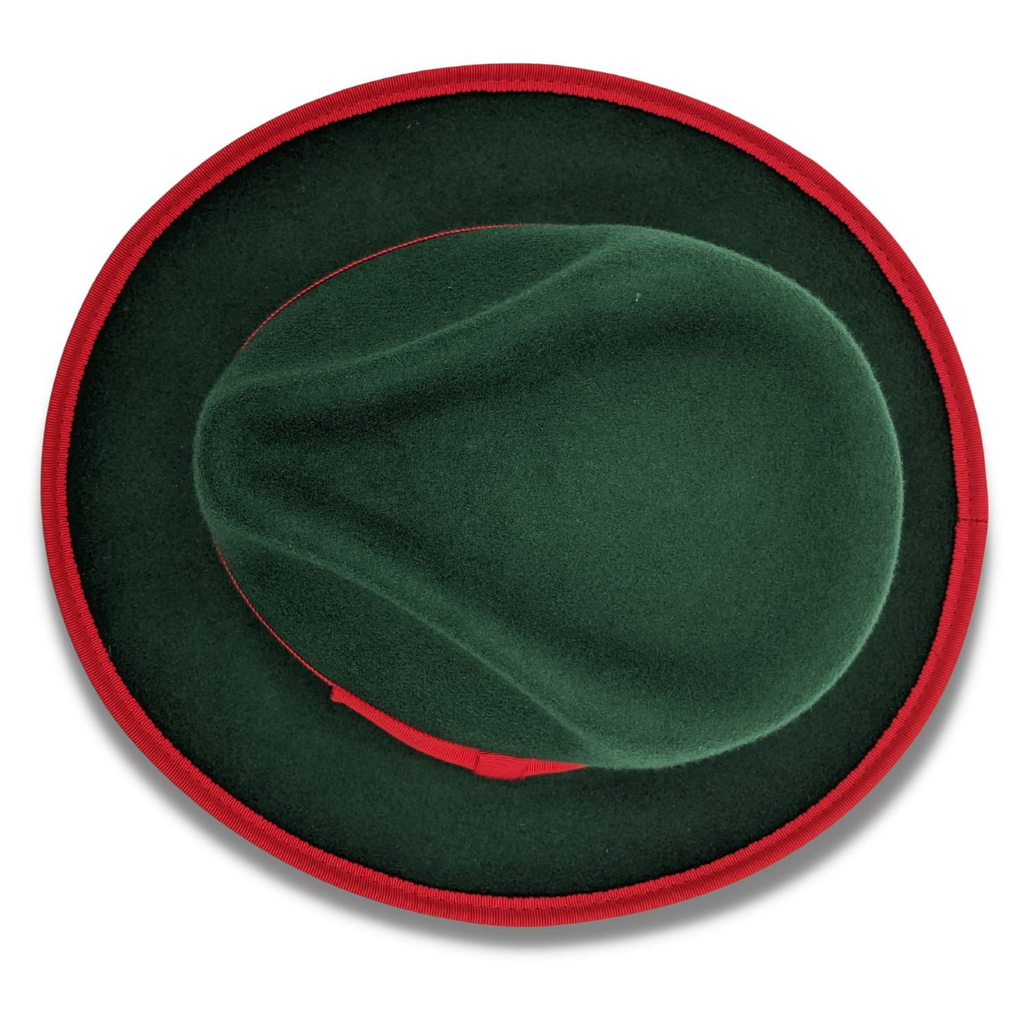 Upgrade your style with our Neoteric Collection Hunter Wide Brim Felt Hat. Crafted from 100% fine wool felt, this hat features a 2 1/2" brim accented with a Red grosgrain ribbon. The pinched crown adds a touch of class, while the interior sweatband ensures all-day comfort. Size XL available for an additional $5.