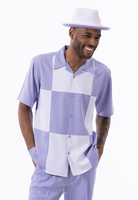 Montique Lavender Color Block Walking Suit 2 Piece SHORTS SET 72314