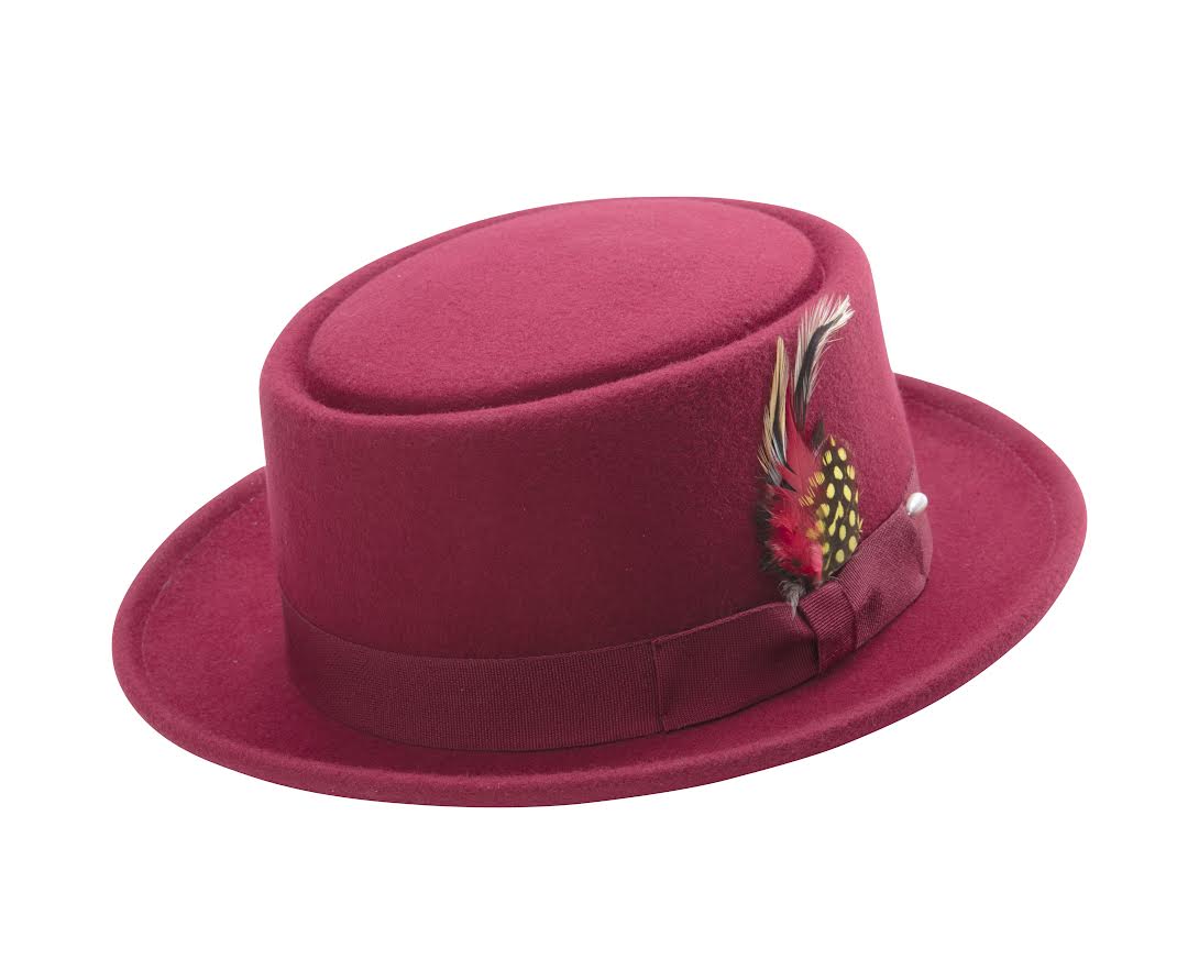 Montique Men's Cranberry Classic Pork Pie Felt Hat H-12