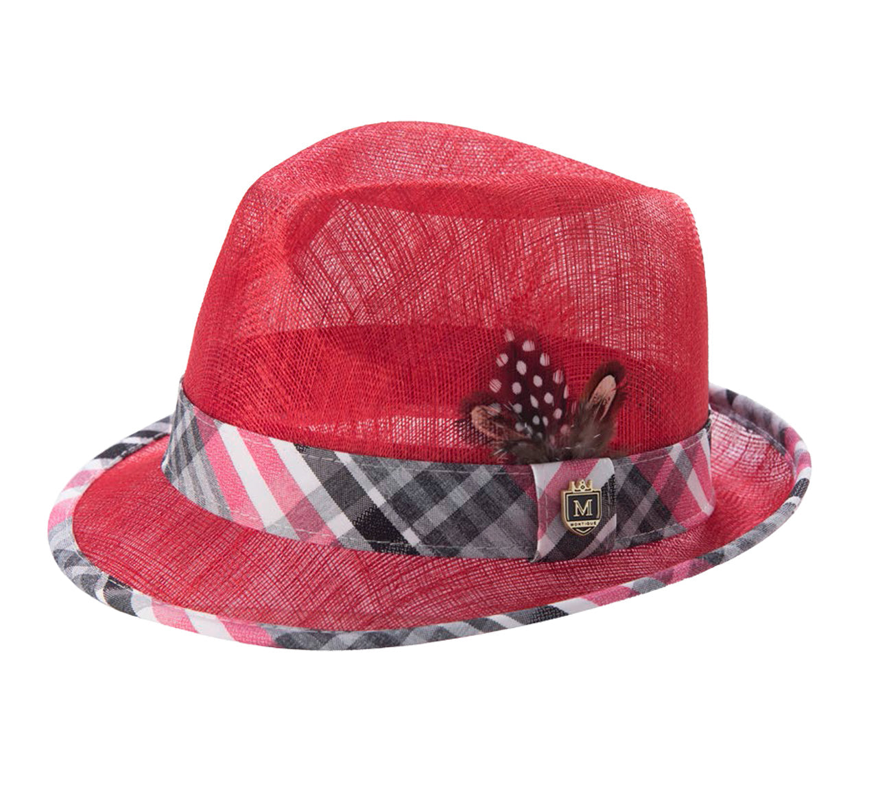 Montique Men's Sinamay Straw Stingy Brim Fedora Hat H685 - Red