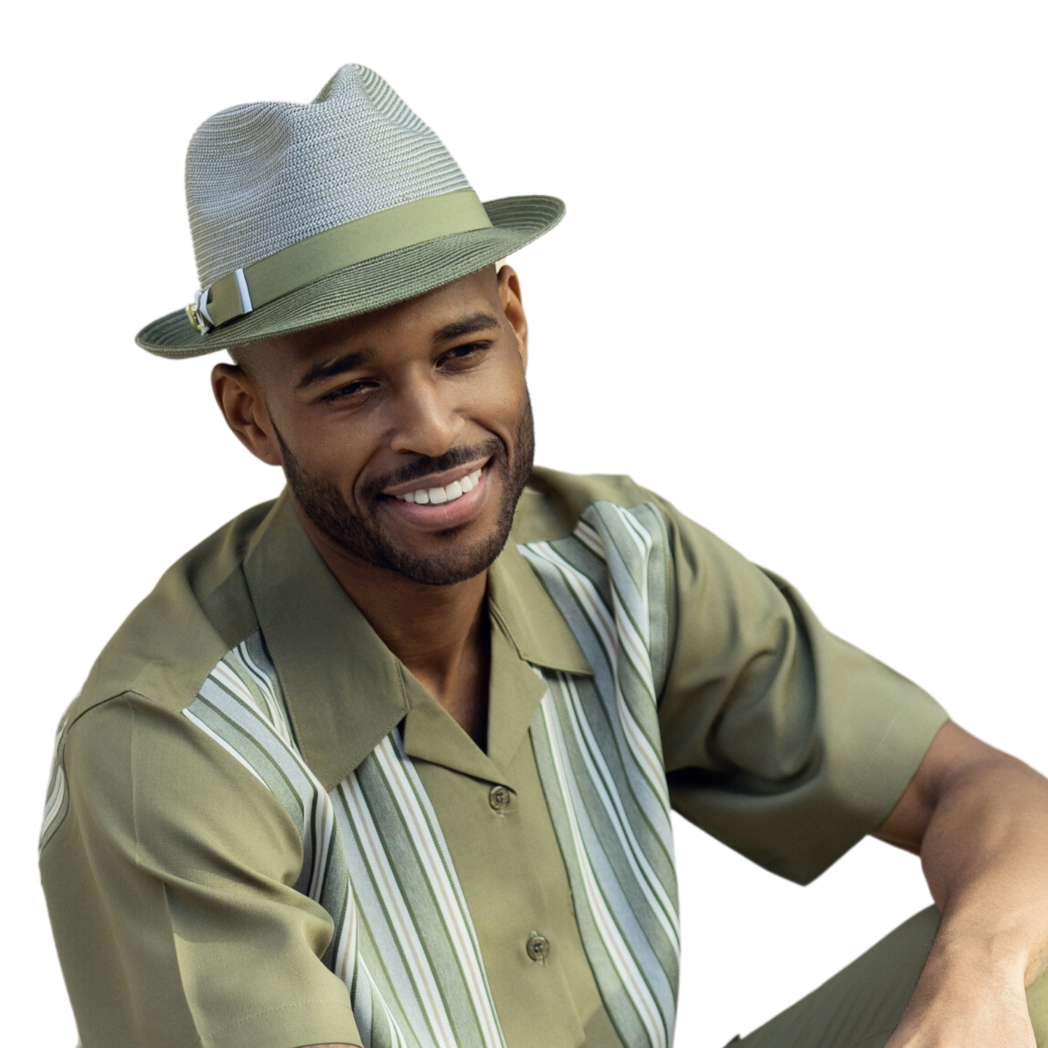Montique Olive Striped Pattern Walking Suit 2 Piece Short Pants Set 72312