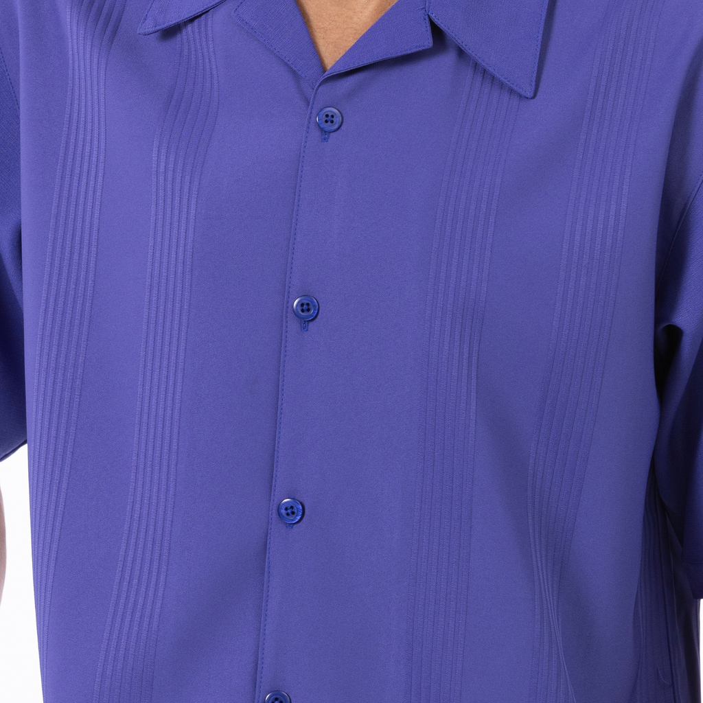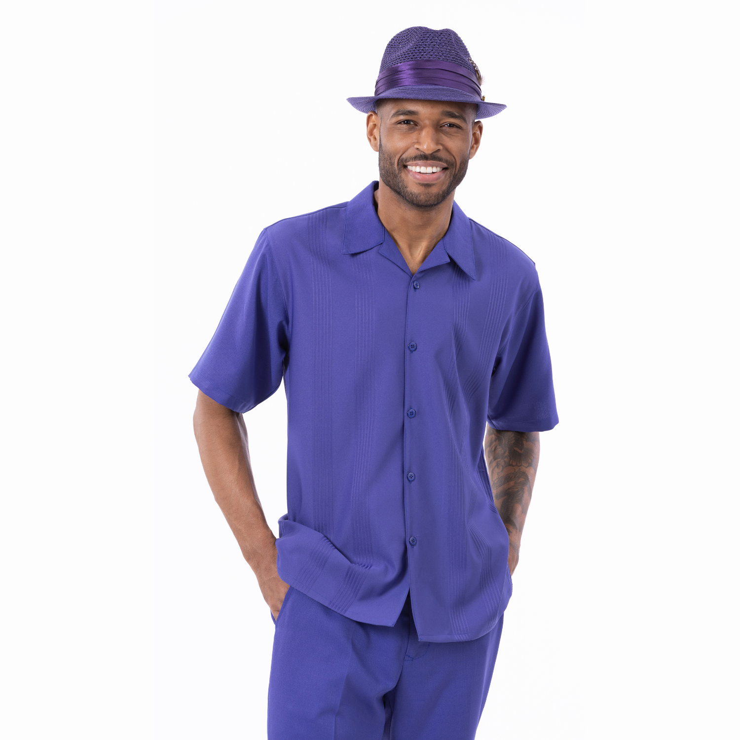 Montique Purple Tone on Tone Vertical Stripes Walking Suit 2 Piece SHORTS SET 72306