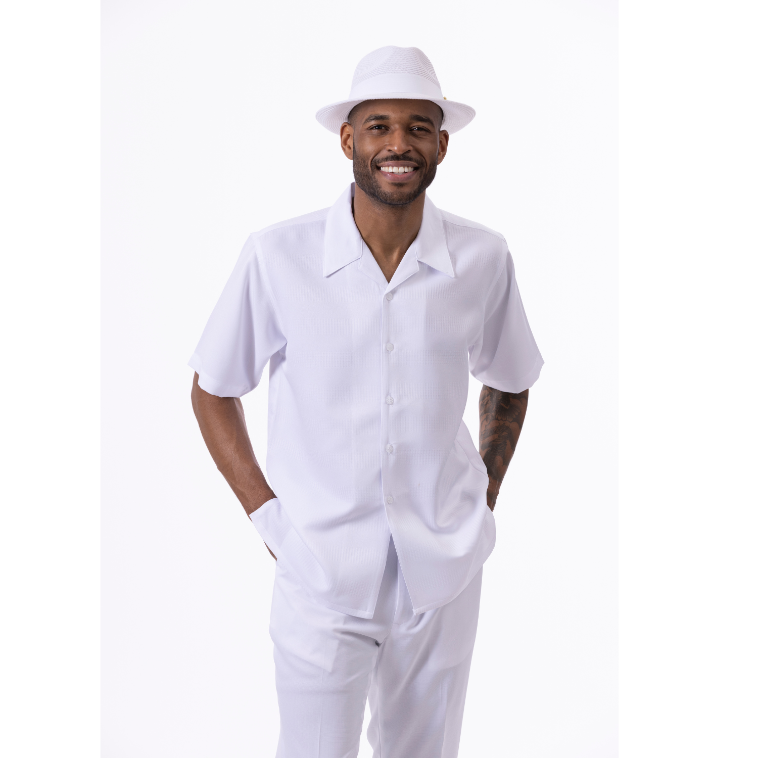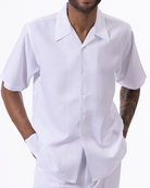Montique Solid White Walking Suit 2 Piece Short Sleeve Set 2311