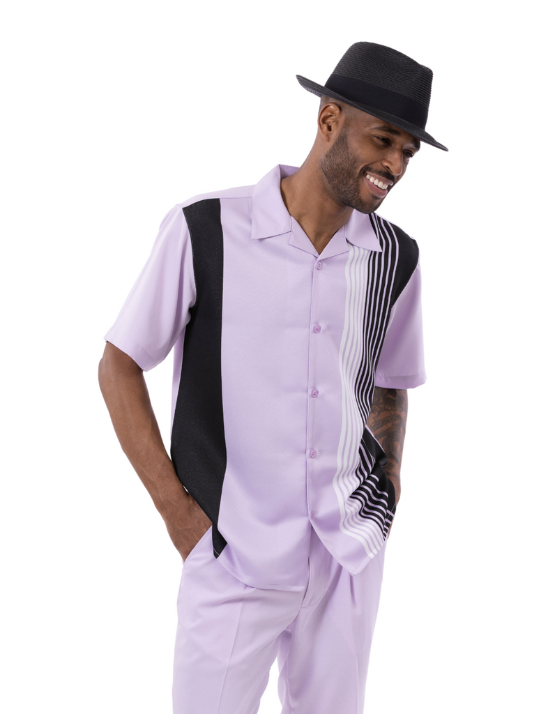 Tidal Togs Collection: Montique 2 Piece SHORTS SET Vertical Stripes in Lavender Walking Suit 72322