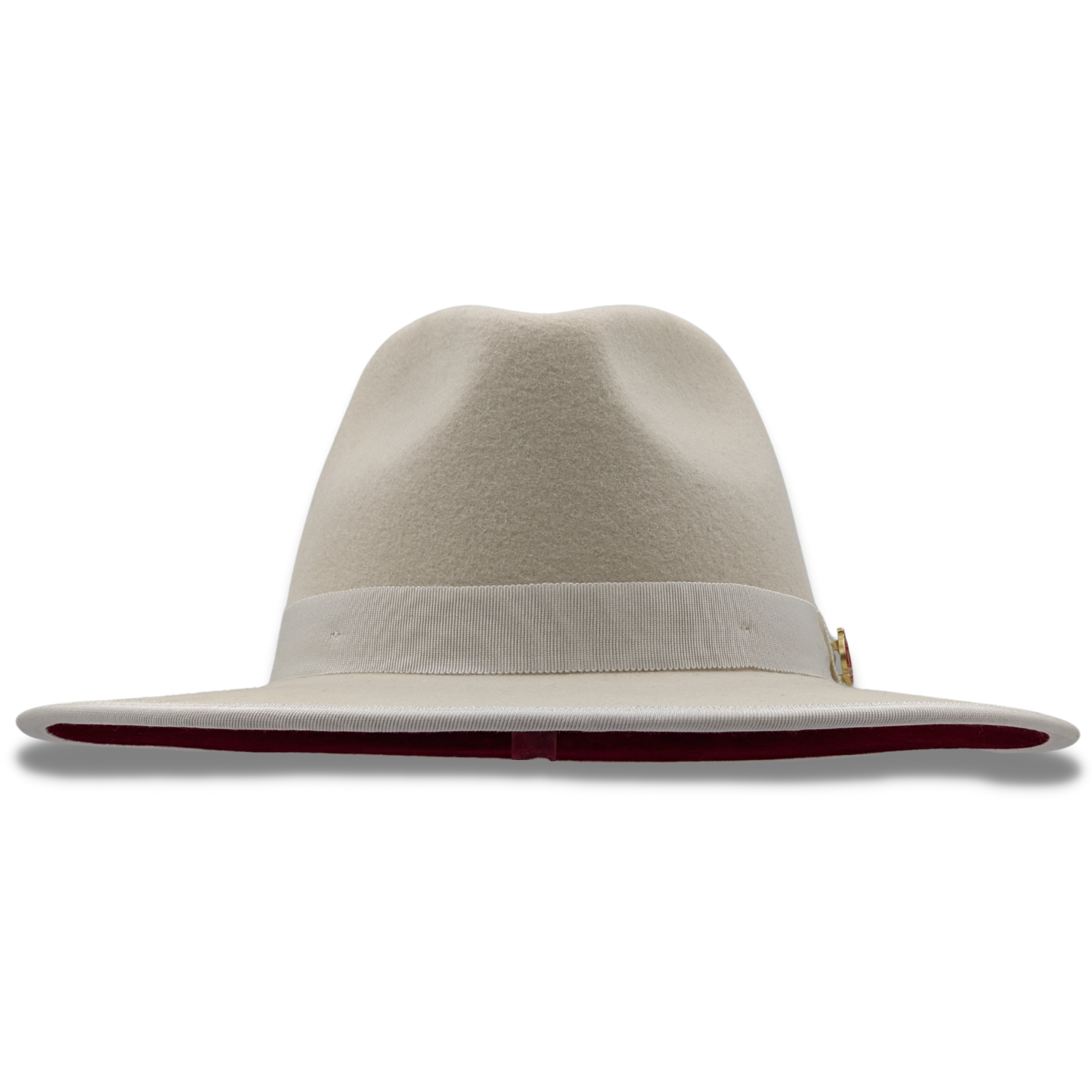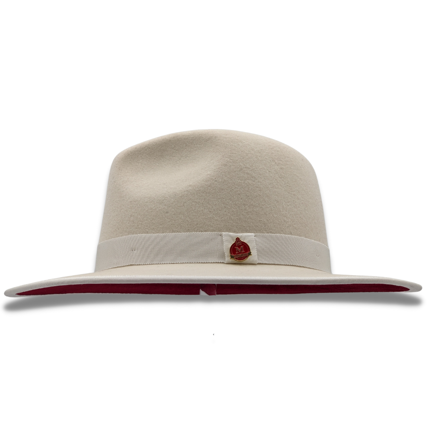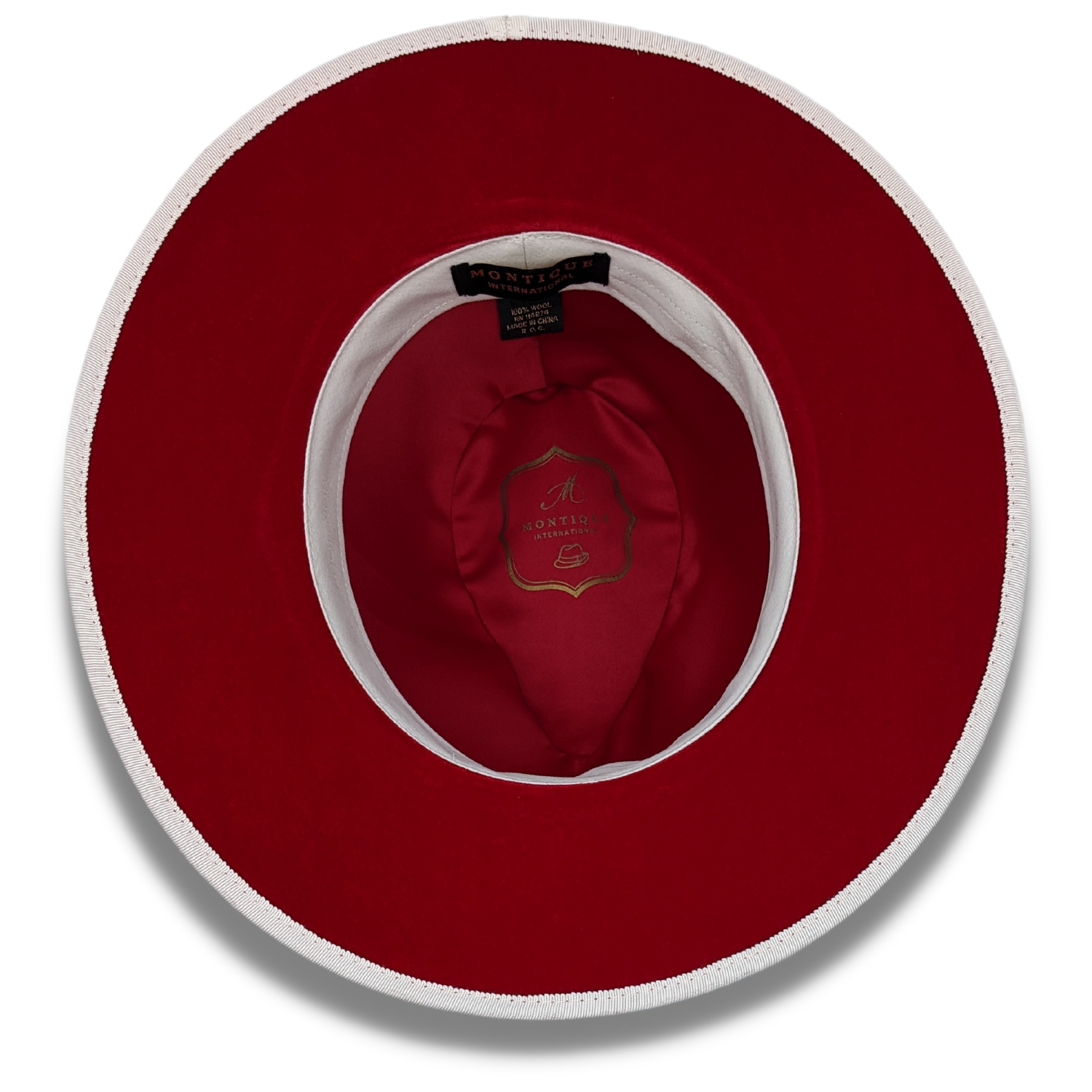 Elevate your style with the Montique White 3 1/8" Brim Red Bottom Wool Felt Dress Hat from our Modernique Collection. This exquisite hat, crafted with a Matching Grossgrain Band adorned with a montique pin, features a distinctive pinch crown for added elegance. The hat’s solid color brim measures 3 1/8" inches, offering a sleek contrast to the red bottom.