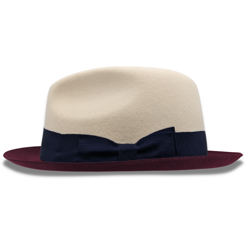 Chicify Collection: Montique White 2 1/4" Wide Burgundy Brim Wool Felt Hat