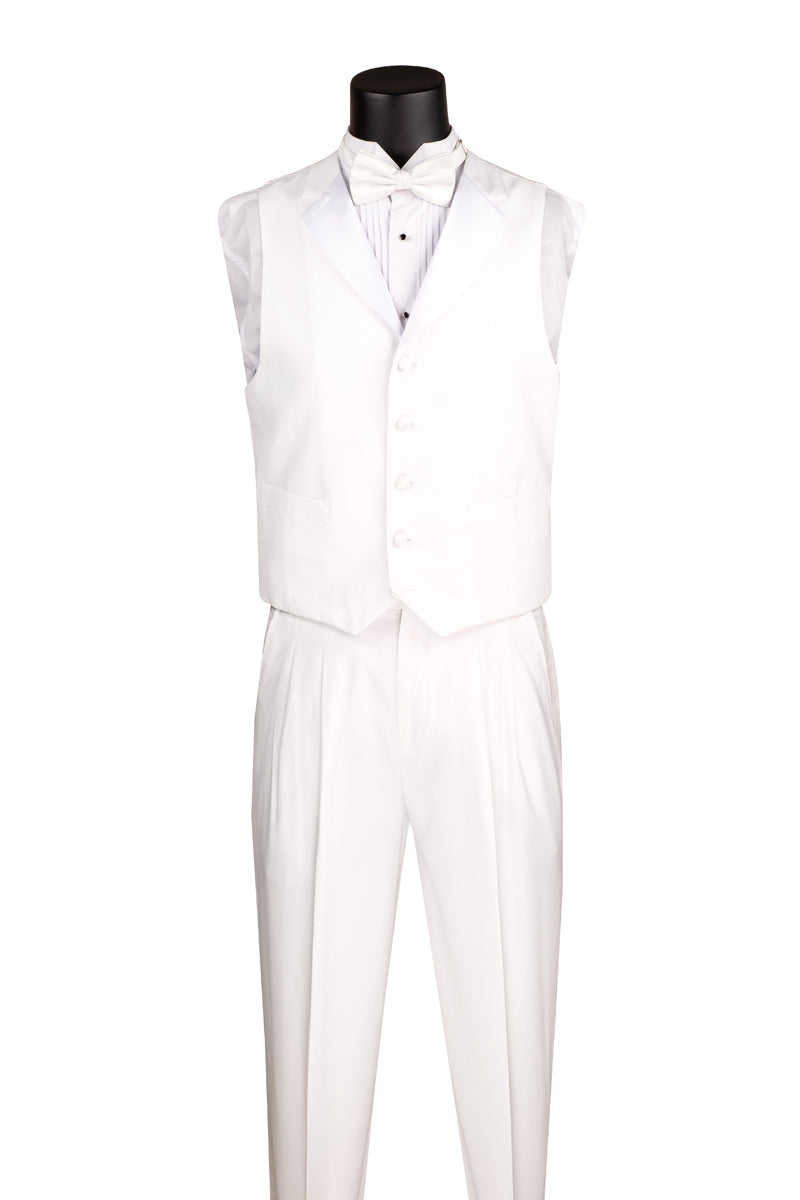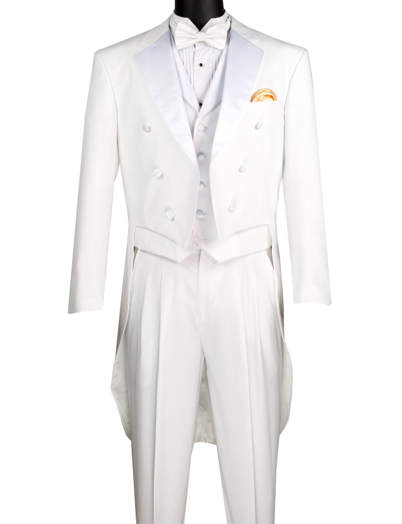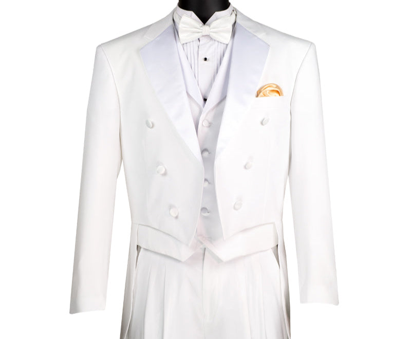 Nashira Collection: Regular Fit White Tuxedo with Tails – 3-Piece with Vest and Pleated Pants