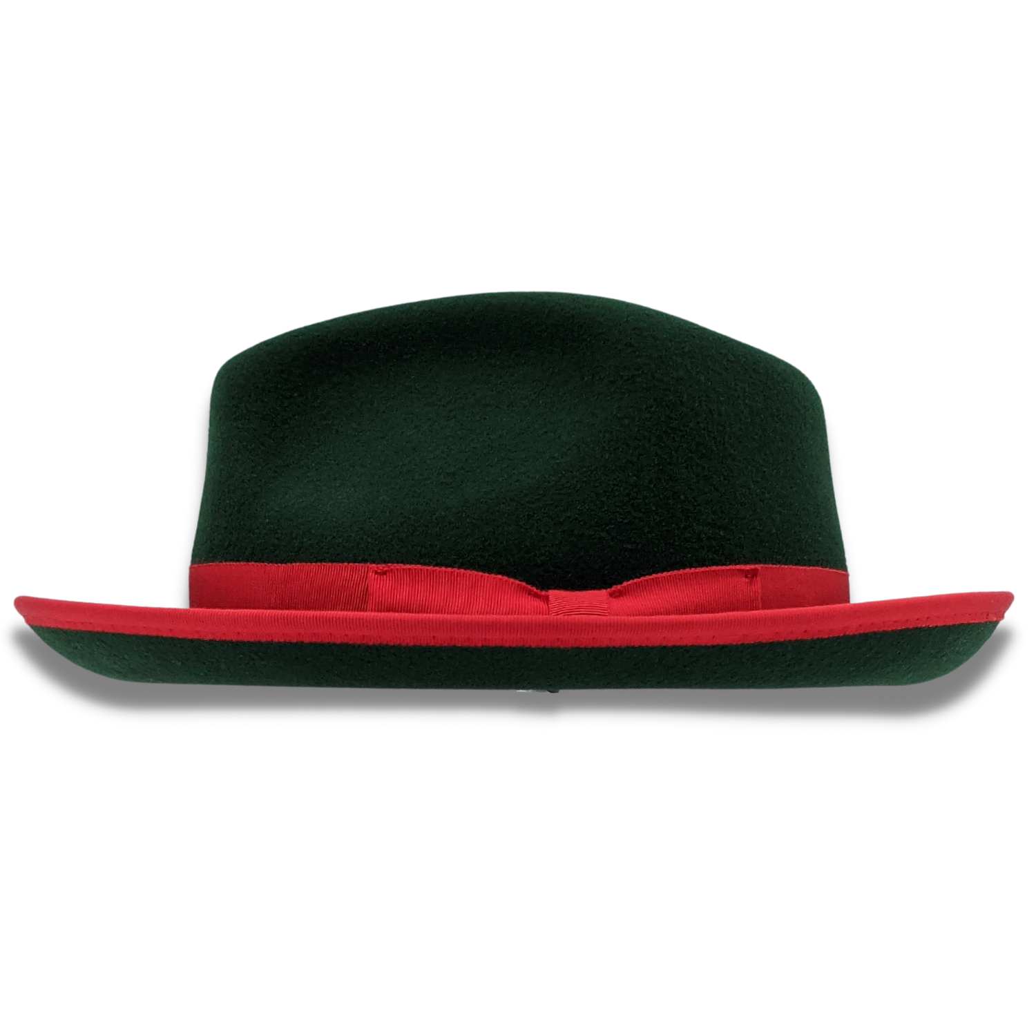Upgrade your style with our Neoteric Collection Hunter Wide Brim Felt Hat. Crafted from 100% fine wool felt, this hat features a 2 1/2" brim accented with a Red grosgrain ribbon. The pinched crown adds a touch of class, while the interior sweatband ensures all-day comfort. Size XL available for an additional $5.