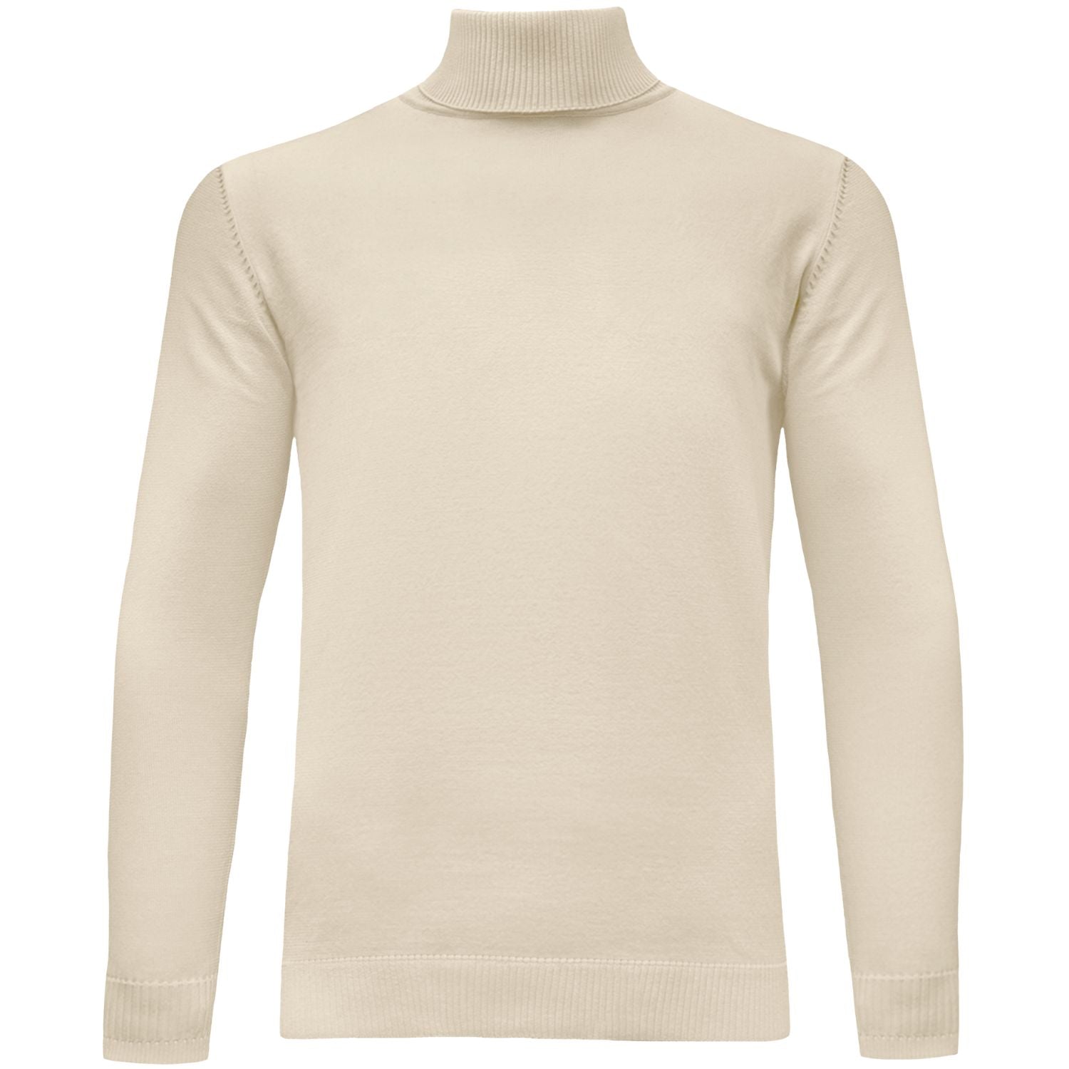 Long-sleeve knit turtleneck in ivory with a clean, minimal front. Soft stretch knit with ribbed neck, cuffs, and hem for a secure, comfortable fit. From Bagazio.