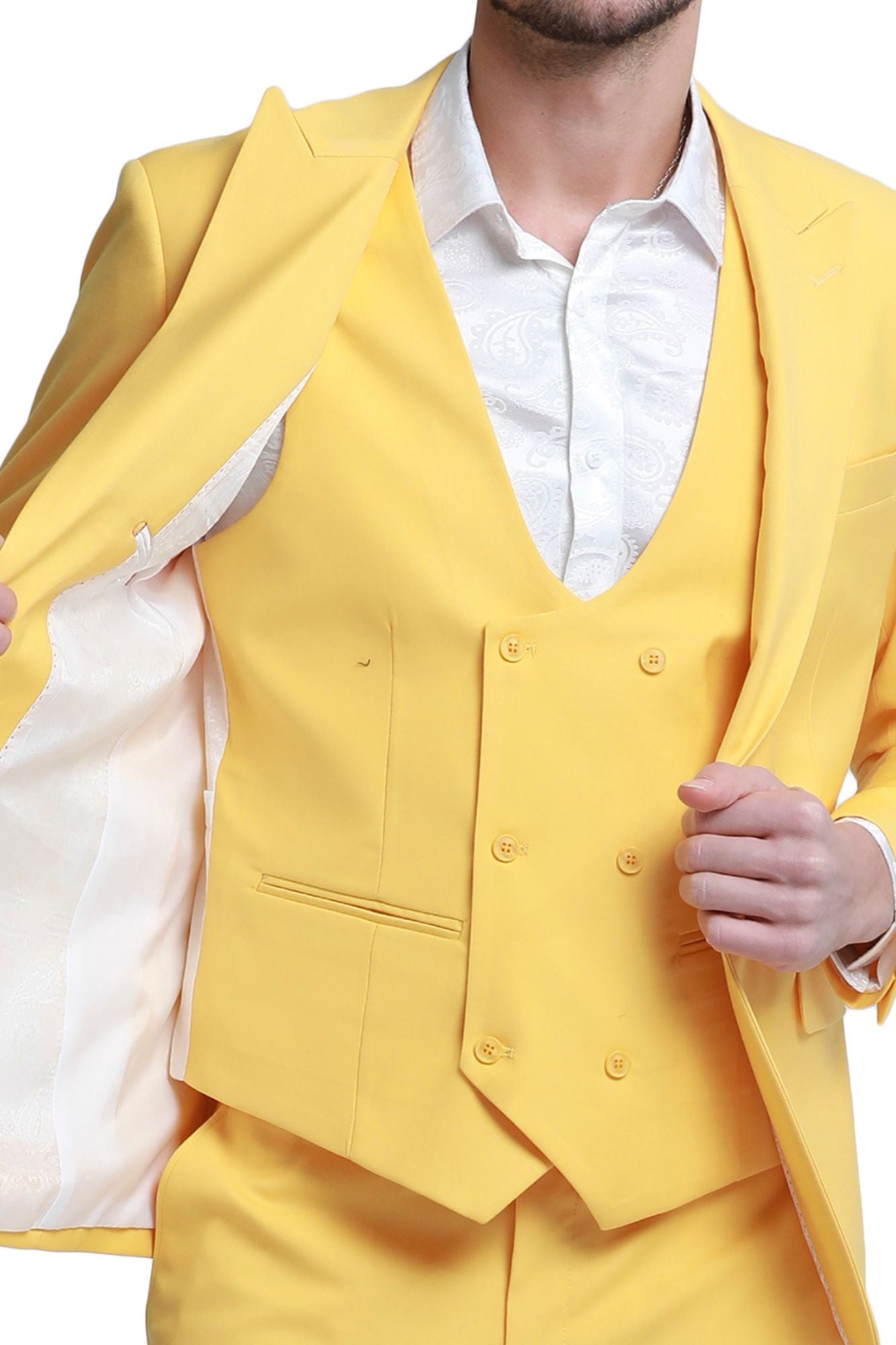 Introducing our Sunshine Statement Canary 3-Piece Suit, the perfect choice for adding a pop of vibrant color to your style. This eye-catching suit is designed for those who love to stand out, featuring a sleek design in a bright canary color that’s sure to turn heads.