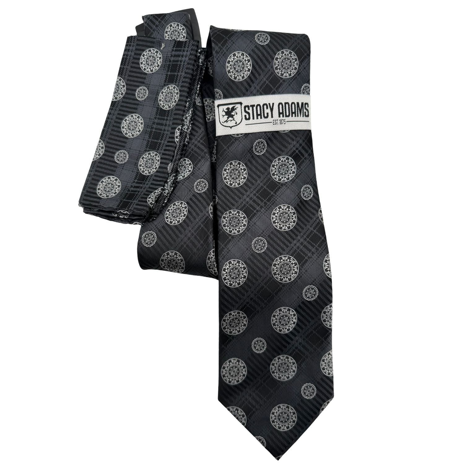 Nocturne Collection: Stacy Adams Tie and Pocket Square Set – Black/Charcoal